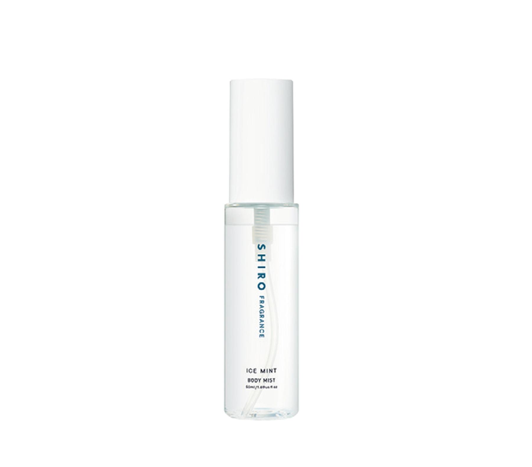 フレッシュな柑橘の香りとともに、メントールの冷感を味わえるボディミスト。出かける前にひと吹きすれば移動中も快適。持ち運びしやすいミニサイズで、モバイルコスメとしても重宝する。「背中にスプレーすると、すっきりして気持ちがいいです」。50ml ¥1,980(シロ カスタマーサポート info@shiro-shiro.jp)