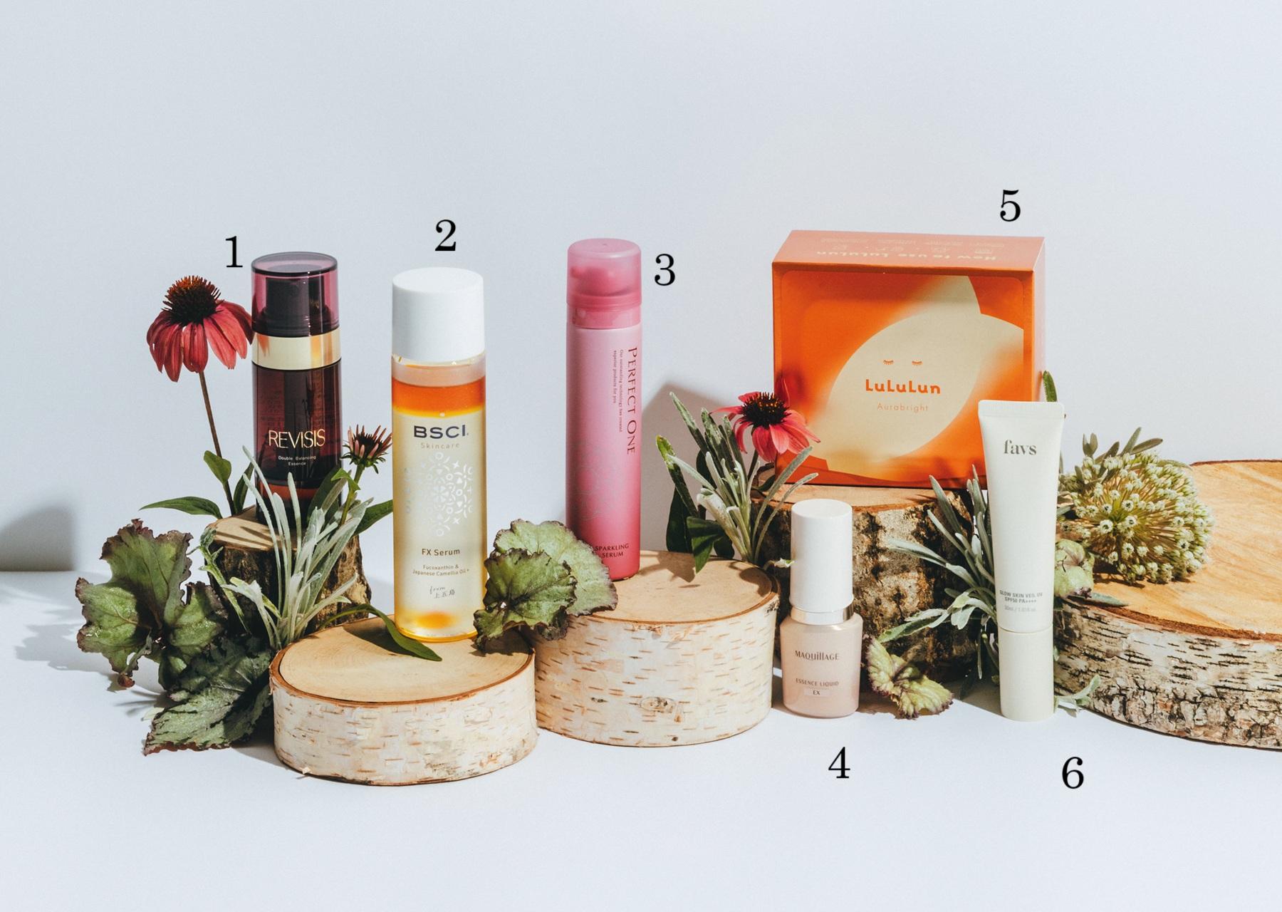 F パーフェクトワンやBSCI、リバイシスの美容液は、美容成分たっぷりで肌にやさしいし、しっかり保湿できるよ。ルルルンのマスクも透明感が出ていいよね。