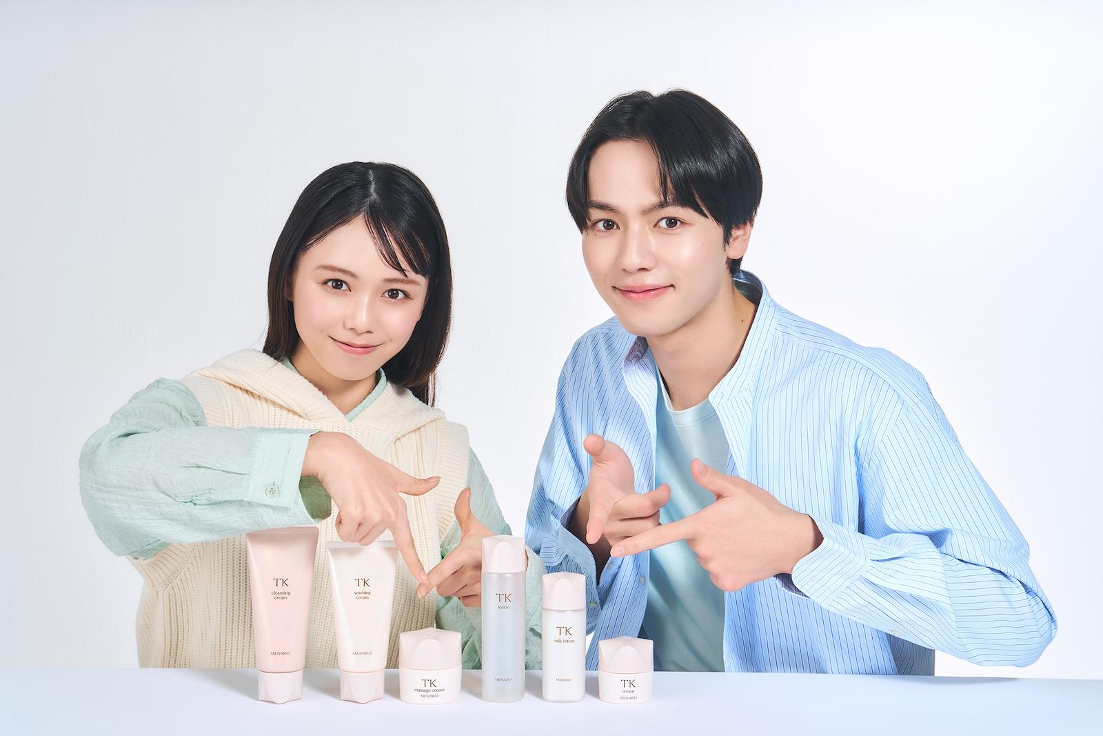 美しいと感じる肌印象の決め⼿ともなる「キメ」。このたびリニューアルされたメナードのTKシリーズはまさに、肌のうるおいを保ち、キメの整ったなめらかな肌に導く6品です。今回、男女混合9人組総合エンタテインメントグループ・ONE LOVE ONE HEART(ラブワン)メンバーの藤咲碧⽻さんと相原⼀⼼さんにTKシリーズを試してもらい、感想を聞きました!