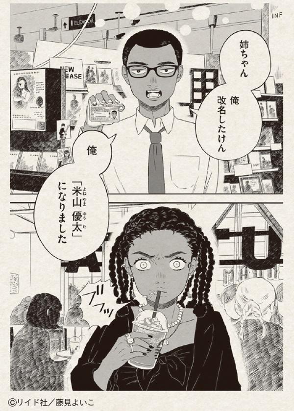 本作は、日本とそれ以外の国にルーツを持ち、世間からハーフと呼ばれている人たちの葛藤を描いた群像劇なのだが、作者の藤見よいこさんもその当事者の一人。第1話で登場するのは、日本人の母とフランス人の父を持つ姉弟で、弟が父の苗字を外して改名したことを姉に告白するシーンから始まる。姉は、幼い頃から異質な存在として扱われる自分を受け入れてもらう処世術としてお調子者となり、上京し“黒人”ライターとして活躍している。対して5歳下の弟は、生まれ育った地元で事務員として働き、“普通になること”を望んでいる。