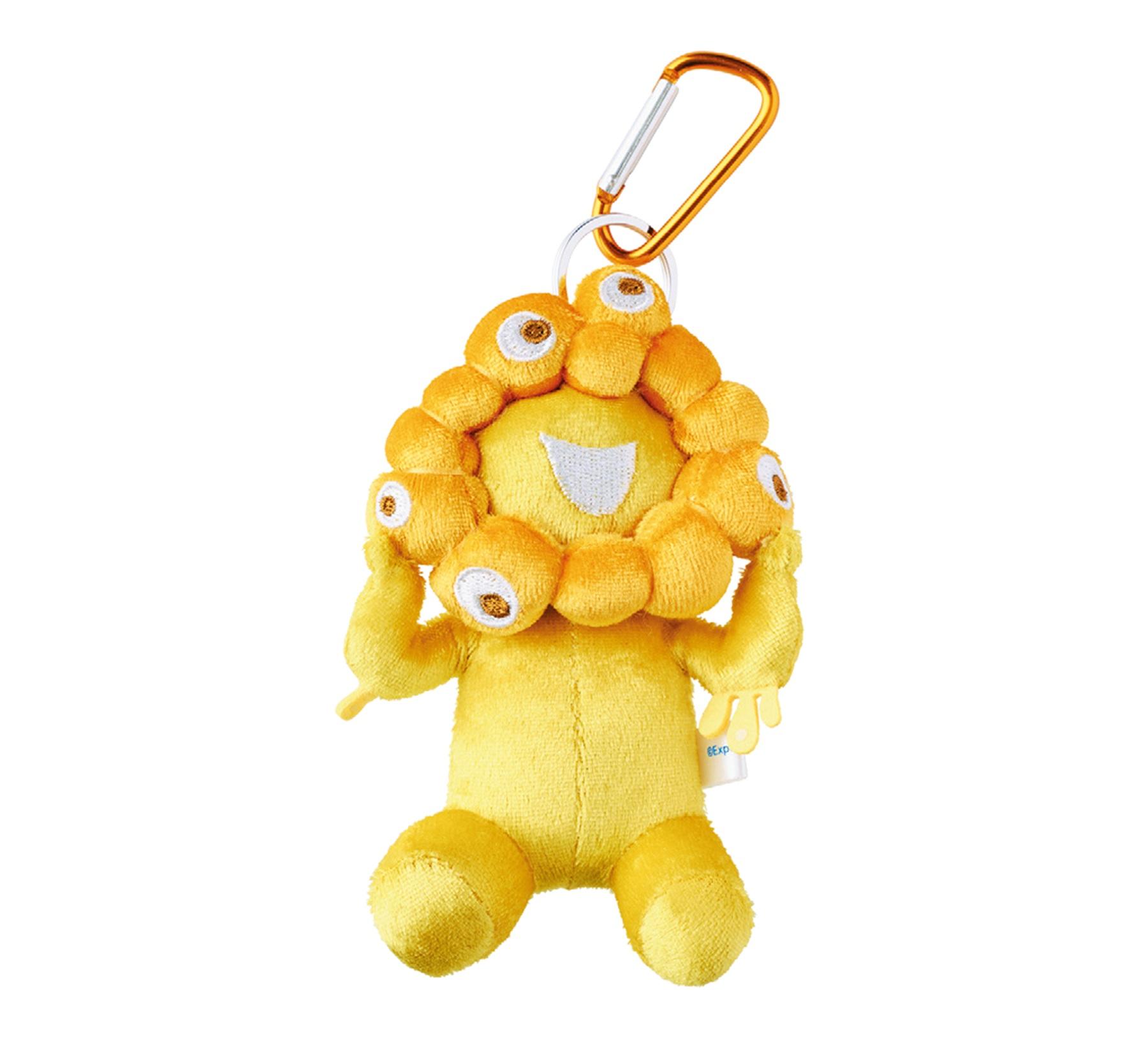 赤と青がイメージカラーのミャクミャクのマスコットが、なんと光り輝くゴールドカラーに! バッグやリュックに取り付けられるカラビナ付き。「EXPO2025 カラビナ付きマスコット(お座り)ゴールド」¥3,278(A)