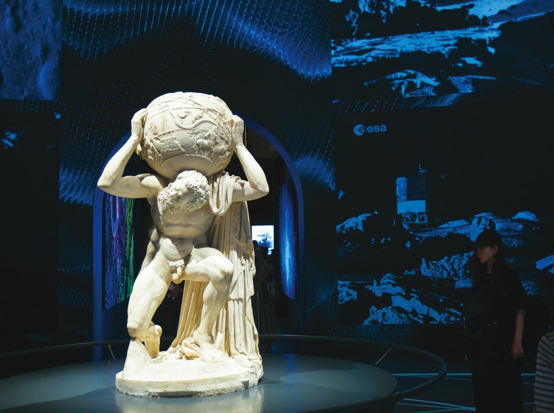 ナポリ国立考古学博物館が所蔵する「ファルネーゼのアトラス」。高さ2m、重さ2tにも及ぶ世界的な文化遺産が日本初公開。