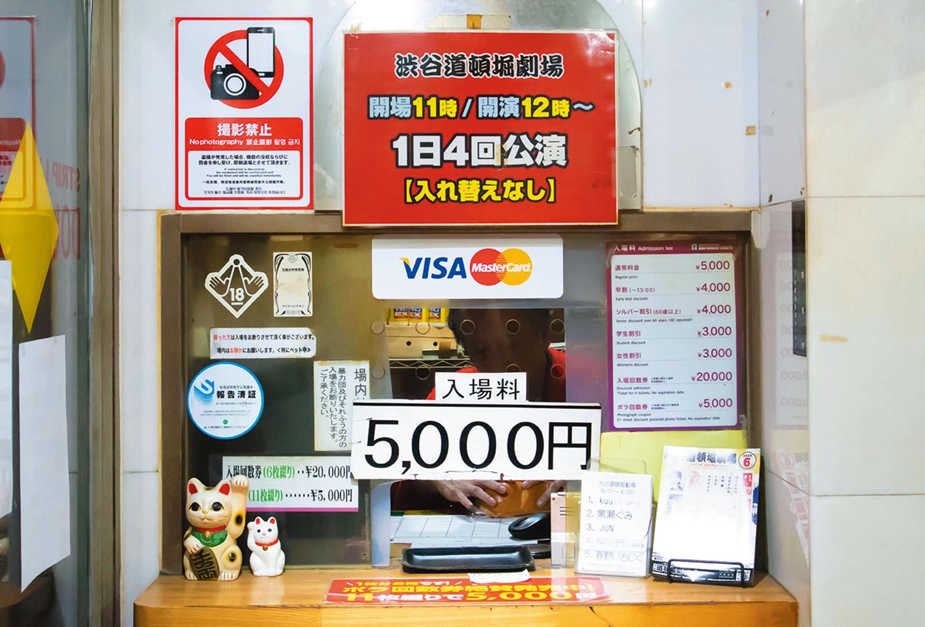 劇場についたらエントランスを入ってすぐの場所でチケットを買おう。岡藤さんいわく、「渋谷道頓堀劇場の方はみなさんウェルカムな雰囲気で、話しやすい方ばかり。ビギナーでも安心できるはず」。