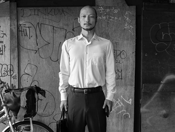 撮影をロケでお願いしようと、河内大和さんを取材した。エレベーターを呼んで待ち構えるスタッフに恐縮した様子でペコリ。撮影の合間も、道ゆく人の邪魔にならないようにと声をかけたり。映画『8番出口』のおじさんのイメージがあまりに強いが、穏やかで優しい人なのだ。