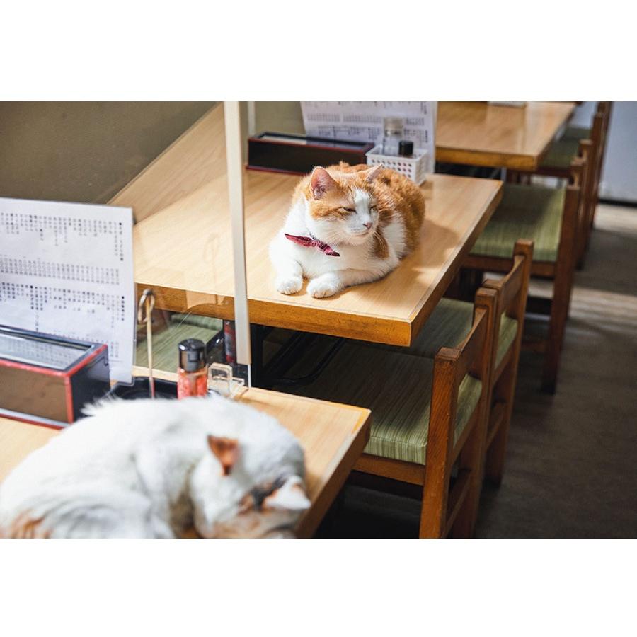『そば処 大むら』の親子の看板猫、白三毛のコンちゃんと茶白のペタ郎(通称・ペタくん)。荒川の河川敷で近所の人が保護したコンちゃんを、『大むら』の大谷さん夫妻が引き取り、ほどなくしてペタくんが生まれた。