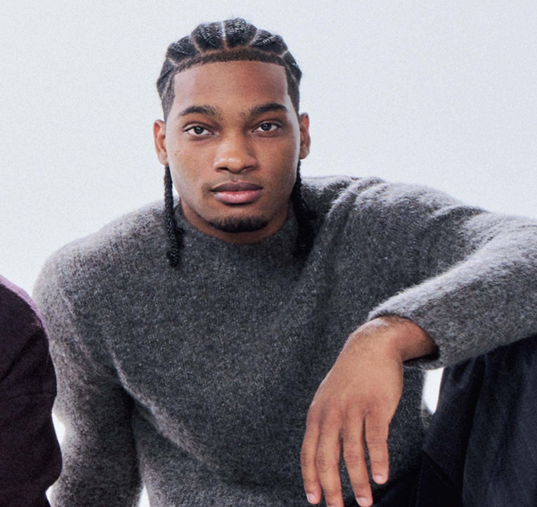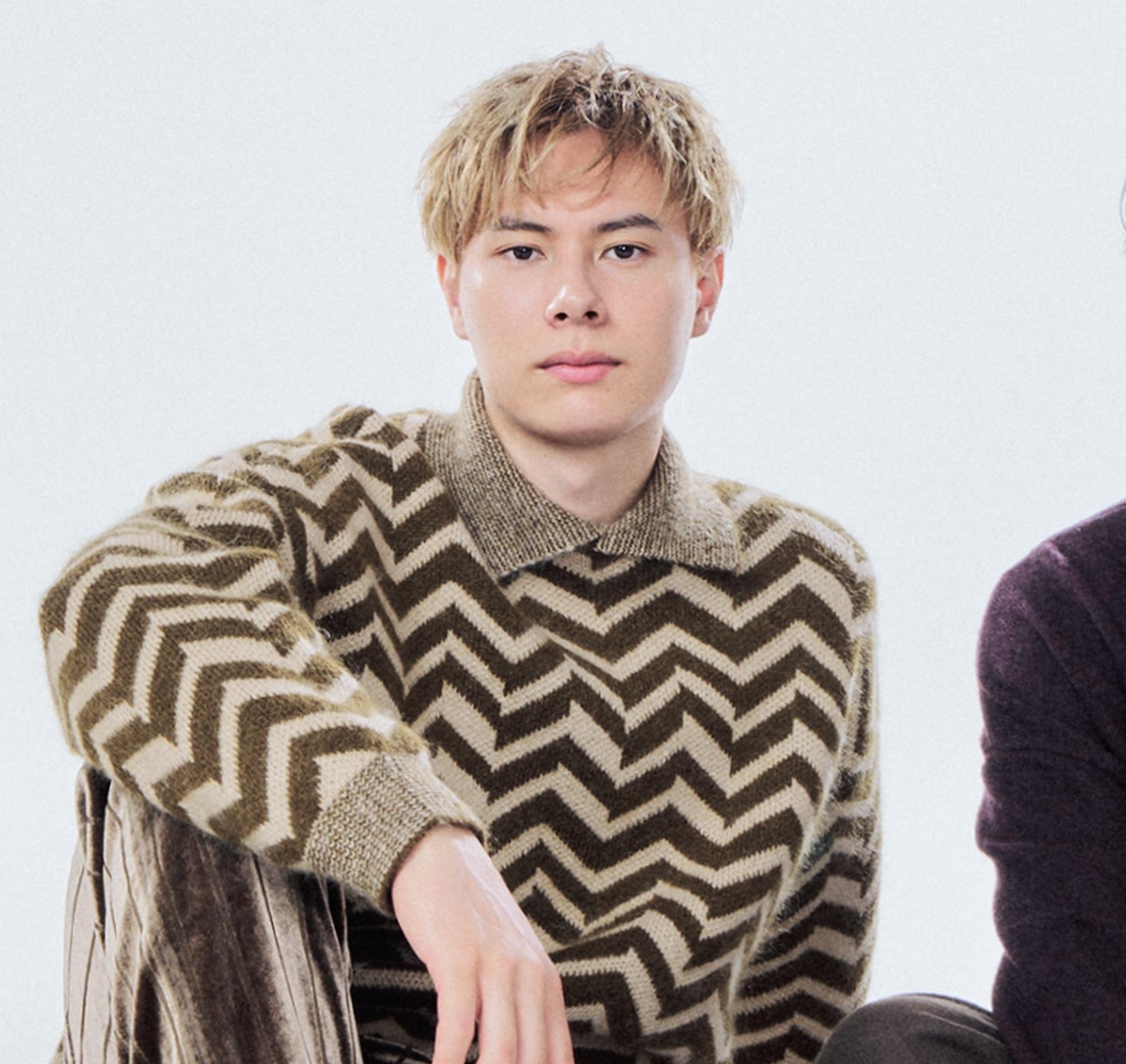 髙橋 藍さん・ニット¥140,800 パンツ¥214,500 シューズ¥113,300(以上エンポリオ アルマーニ/ジョルジオ アルマーニ ジャパン) ソックスはスタイリスト私物