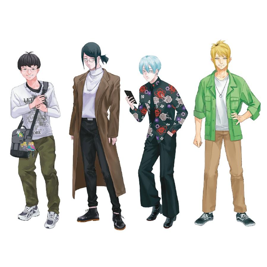 左から、超早口トークのカードゲームオタク・だいだい(大橋大河)、一見常識人だがネット論客の暴露本を愛読するなど隠し事がありそうな番井孝人、他人を拒絶し刺々しい言葉ばかりぶつけてくる格ゲーマー・ash、ダンスサークル兼部の“陽キャ”(に見えるが、本当に…?)西村陽日。気になる相手を選び、陰色の青春の日々を送ろう。