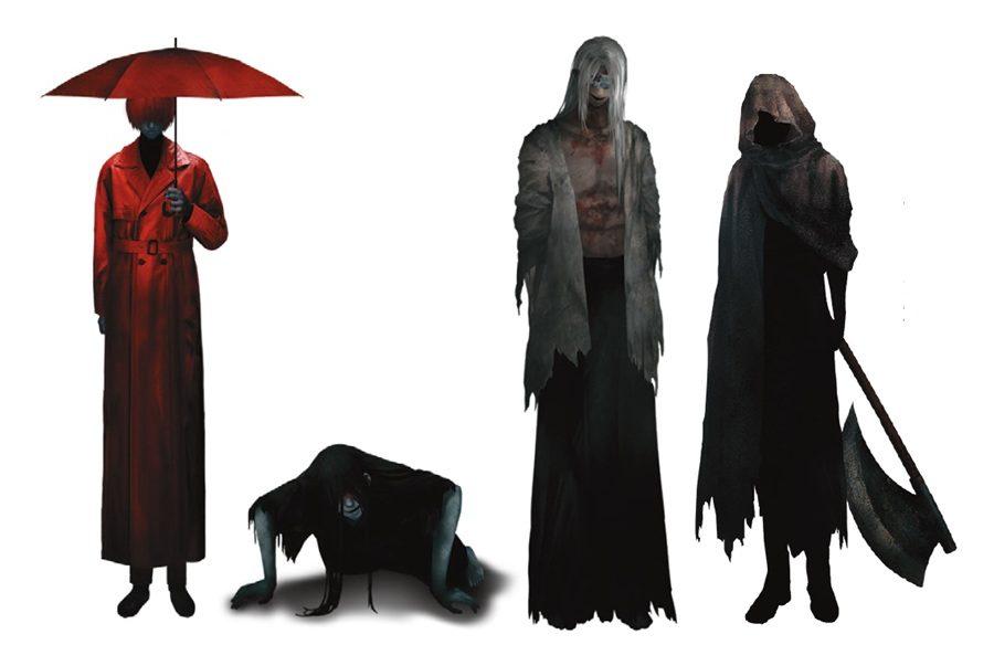 なぜか主人公に強く執着する「赤い傘の男」、四つん這いで主人公に付いてくる「這いばい男」、物腰柔らかな「銀髪の男」と彼のもとで過ごす天真爛漫な「生首」、静かに主人公を導く「フードの男」、好戦的な「長鉈男」、暗闇に現れる「隙間の男」…。ほかにも、魅力的なキャラクターが多数登場。最初は怖くても、徐々に好きになるはず。