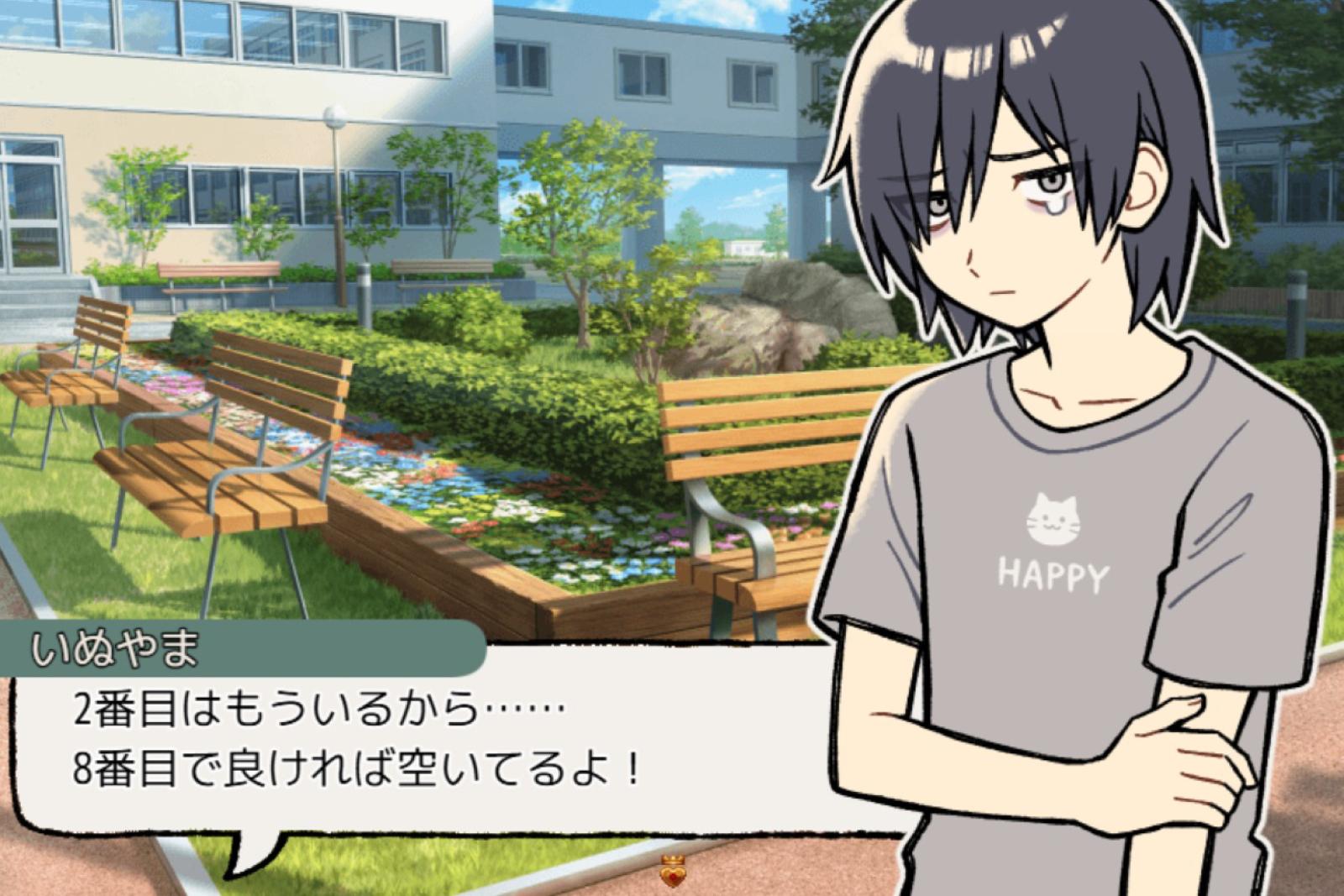条件を満たすと会うことができる1~7番目の彼氏。正統派な幼馴染み、高飛車ツンデレお坊ちゃま、ゲーム好きオタク男子、自分が一番かわいい♪な弟系、優しさ滲み出る武闘派筋肉男子、三つ編みサングラスの中国風アウトロー、主人公を崇拝する目隠れ銀髪ロング…。犬山さんのお気に入りは2番目の彼。