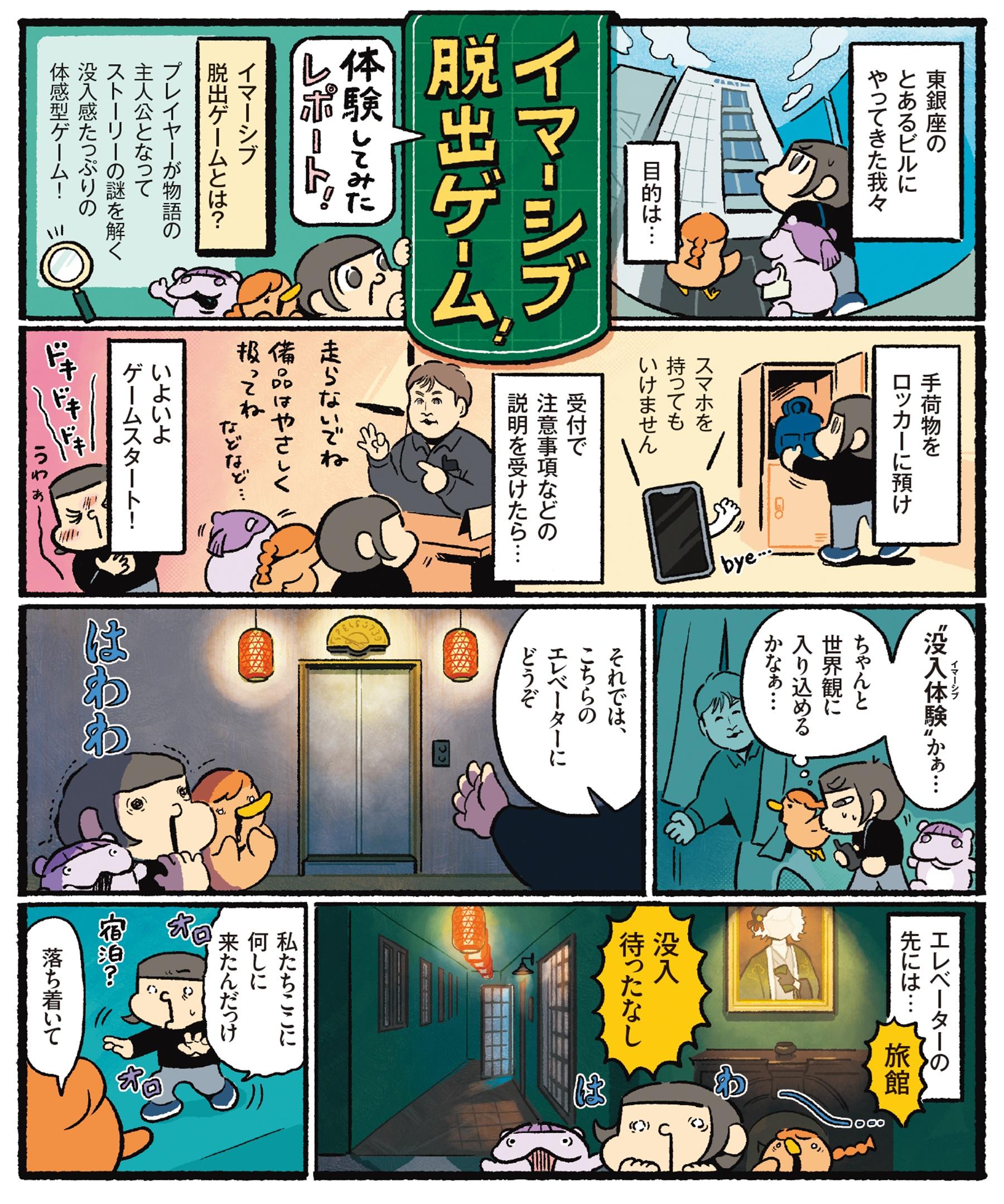 ということで、今回はゲーム好きのイラストレーター・カメダさんと、編集部スタッフ2人で施設におじゃま。ごく普通のオフィスビルの1フロアにあり、「ここでいったい何に没入するのかしら…?」などと思いながら中に入ると、もはやそこはただの旅館(褒めてます!!)。