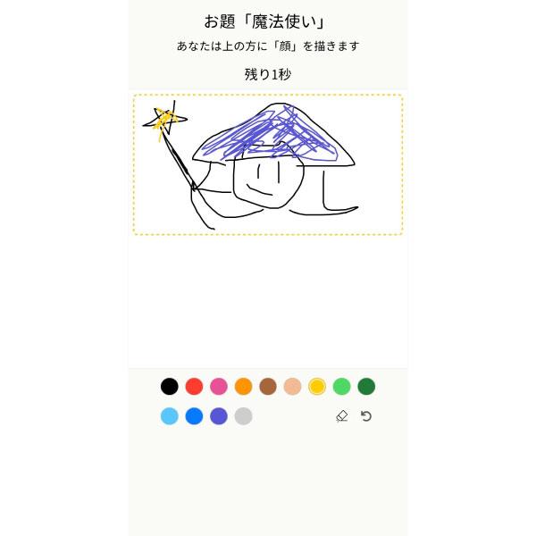あとスマホゲーは、コミュニケーションツールとしても優秀。たとえば『お絵かきコラボ』は、ランダムにマッチングしたプレイヤーと一枚の絵を半分ずつ分担して描き、完成させるアプリなんだけど、友達と遊ぶこともできて、飲んでいるときとかにやると結構盛り上がる!
