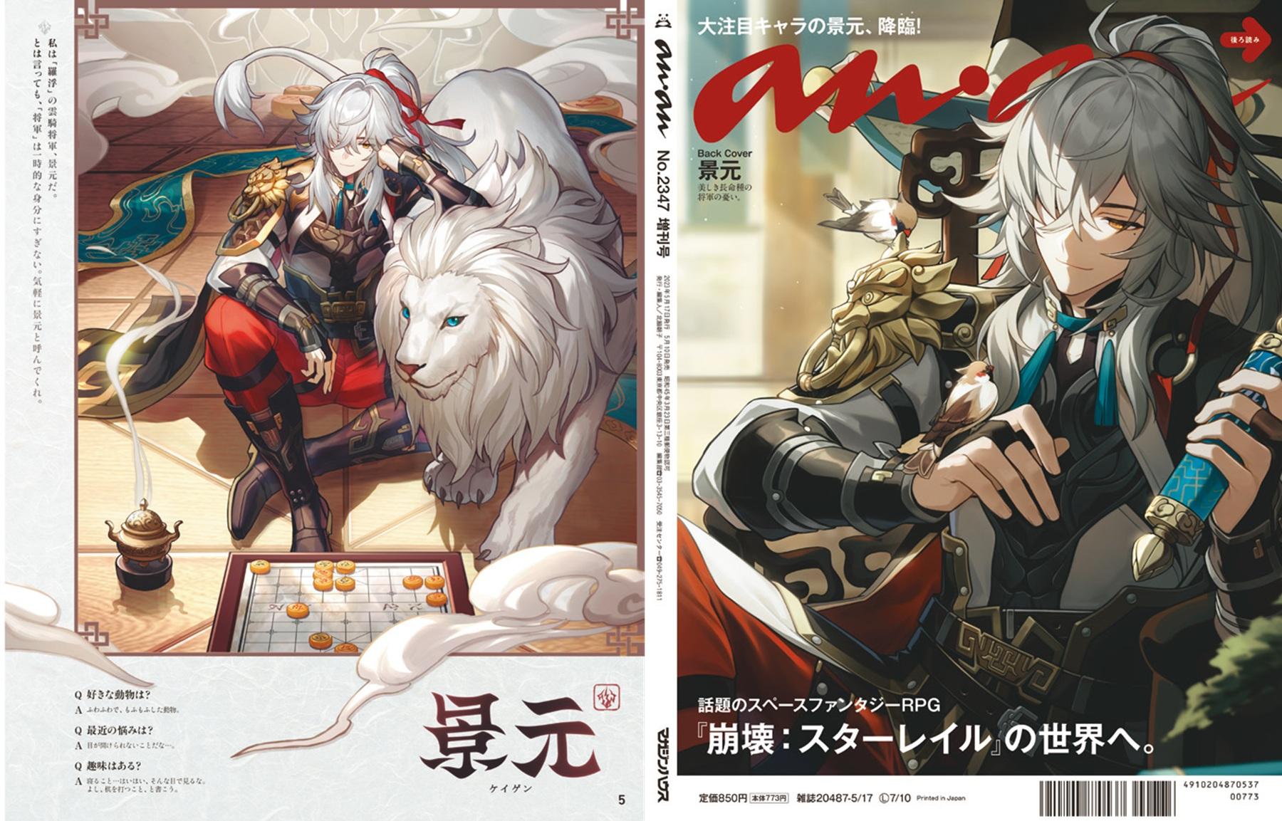 anan初登場でバックカバーを飾ったのは景元。特集ページでは彼のほかに丹恒、刃、彦卿、羅刹らが登場。当時、『崩壊:スターレイル』は第2章の仙舟「羅浮」編が実装されたばかり。特集では『崩壊:スターレイル』の紹介に加えて、新たな世界についての解説も記された。