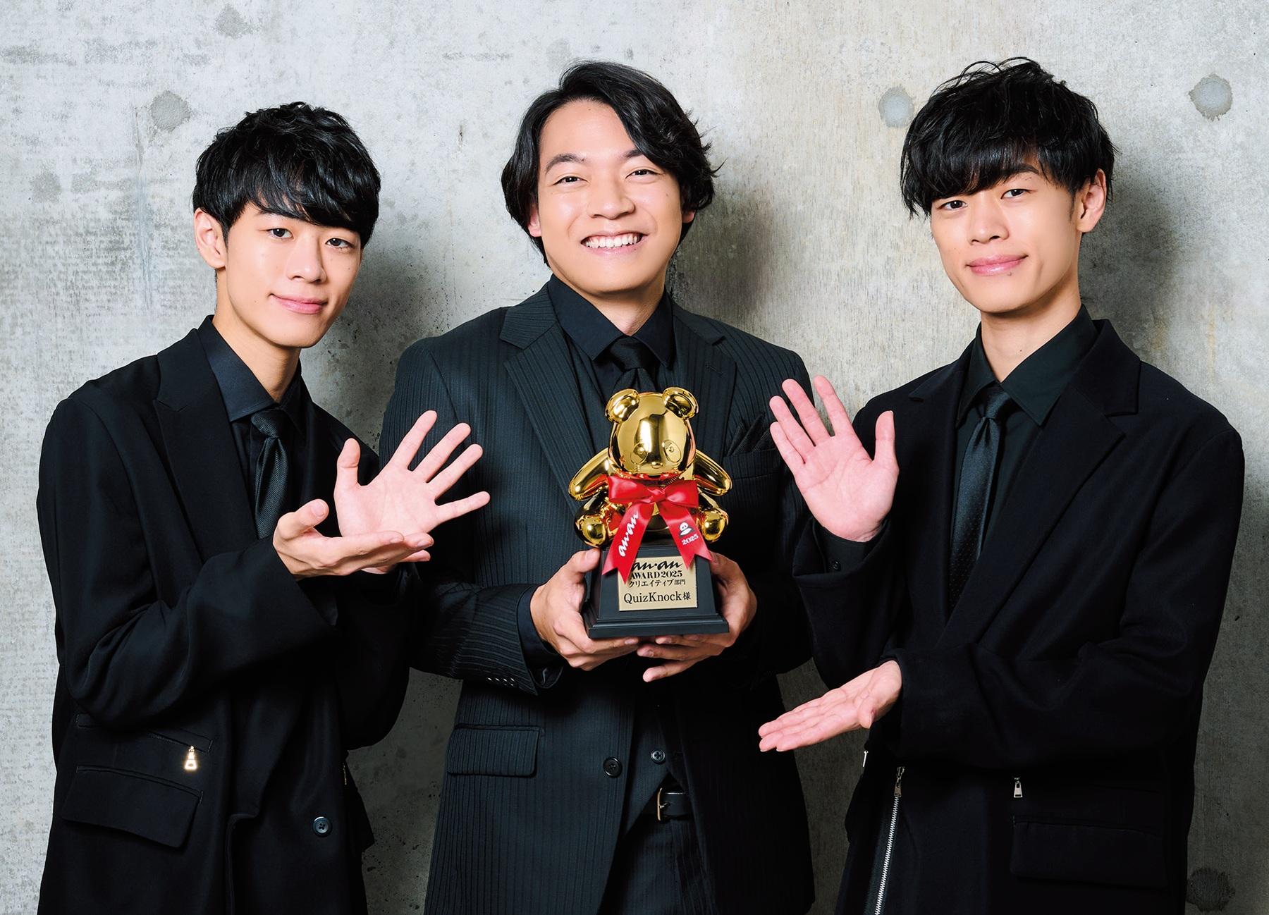 「受賞はとても名誉なこと。日本のクイズ文化を積み上げてきた先人たち、そしてうちのスタッフに改めて感謝したいです。我々は来年10周年を迎えるのですが、ここまでやってきたことを評価していただけた一年だったのかなと思います」(伊沢拓司さん)。「この場には僕たちが立っていますが、受賞は周りの支えあってこそ。演者以外のチームも面白いことをたくさんしているので、ananさんには裏側の部分も取り上げていただけたら」(東問さん)。「大変ありがたい賞をいただけたので、これを力に来年、再来年、10年後と、よりパワーアップしていけたらと思います」(東言さん)