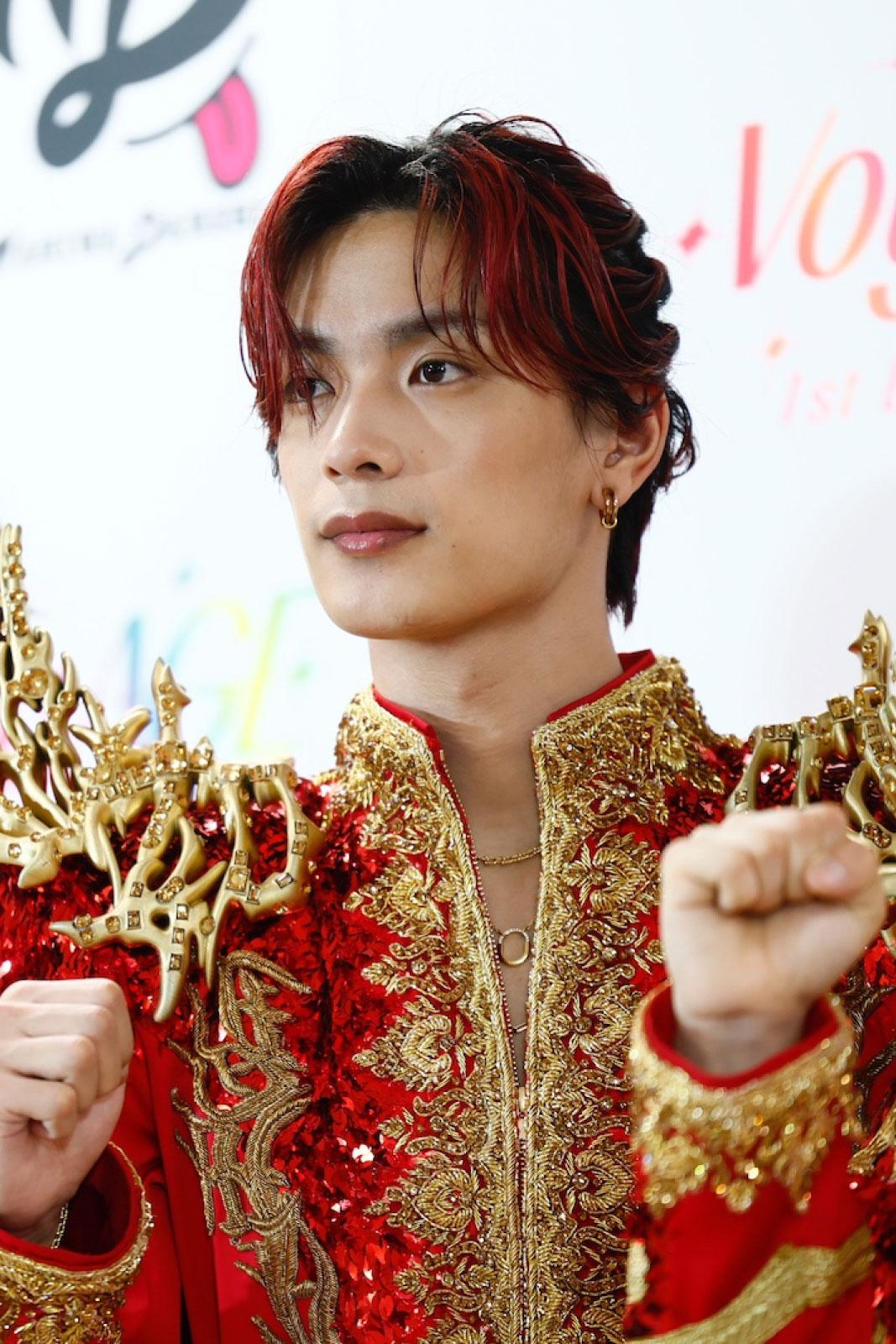 ライブの⾐装を担当する⻑尾謙杜さんは「ドームツアーのオープニングは、『絶対に⾚で出よう』ってアリーナツアーの⾐装を作っている時から決めていました。⼀番こだわったのは王冠です。7⼈で王冠をかぶって出てくるってことは、相当な勇気が必要だと思いますし、覚悟がいることだと思うので、そこは⾒てもらえたら嬉しいなと思います」と会⾒で話していたように、デビュー5年⽬の貫禄を感じる堂々とした登場で観客を圧倒した。