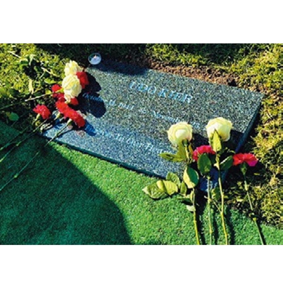 会場の外に出ると、ウドさんの“骨壷”を乗せた霊柩車が待機していた。ゆっくりと進む霊柩車の後に続き、電動カート数台、その後に参列者は連なって、セメタリーを横切る小道を歩いて進む。驚く程の晴天の中、墓参りに来ている家族たちを見かける。日本の墓場で見かける風景とは趣が違う。墓の前でシートを広げ、まるでキャンプやピクニックのような寛いだ風景。すると、長い尾を持つ孔雀が参列の横を通り過ぎていく。僕らを先導するかのように颯爽と。美しい尾を持つのは雄だけ。ウドさんがここにいる? 参列者に尋ねてみると、ここで飼われている孔雀らしい。霊柩車は墓地の最も景観のよいGarden of Legends区間にある美しい池Sylvan Lakeで停まる。すぐそばにテントが張られており、参列者はそこへ移動。遺灰の埋葬式を見守る。再び、牧師からの終了の挨拶。参列者は、一人ずつ、墓石に近づいて、お花をたむけ、お別れをする。