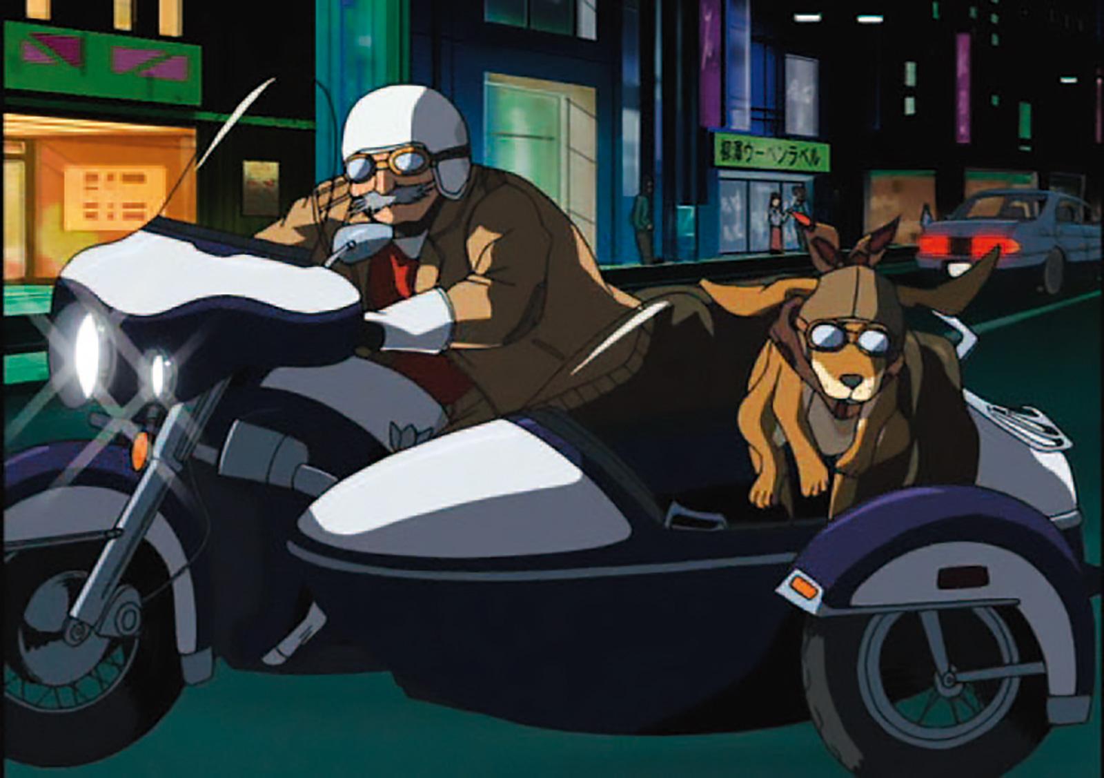 TVシリーズ#356「怪盗キッドの驚異空中歩行」/鈴木財閥の相談役で、仕事は弟の史郎にまかせて道楽暮らしをしている鈴木園子の伯父・鈴木次郎吉。彼が乗るのはサイドカー付き大型アメリカンバイク。園子のバッグを奪ったひったくり犯に、サイドカーに乗せていた愛犬ルパンを飛びかからせ、自ら捕まえる大捕物を演じた。次郎吉とルパンがおそろいのゴーグルをかけているところがかわいい!