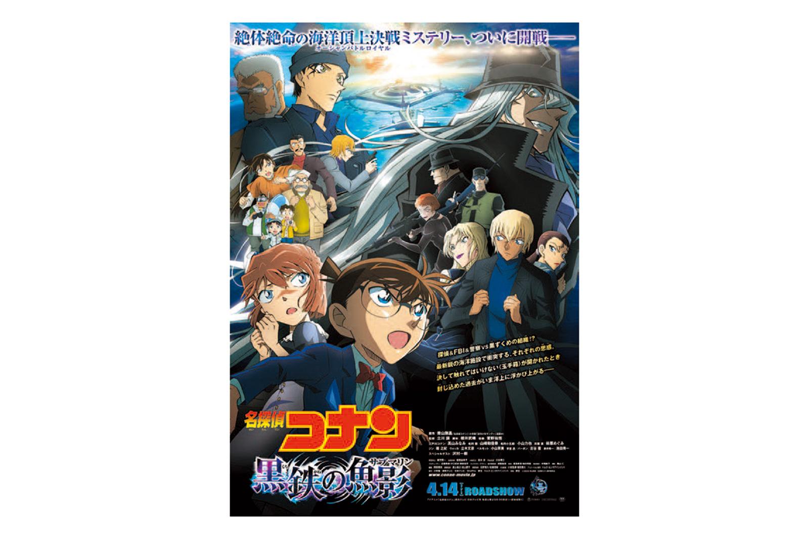 劇場版第26作『黒鉄の魚影』2023年/世界中の警察の防犯カメラを繋ぐための施設〈パシフィック・ブイ〉が八丈島近海に誕生。たまたま八丈島に少年探偵団やコナンらとホエールウォッチングに来ていた灰原哀に黒い影が近づく! 黒ずくめの組織の一味にさらわれた灰原を取り戻すため、阿笠博士は愛車のビートルで壮絶なカーチェイスを繰り広げる。Ⓒ2023青山剛昌/名探偵コナン製作委員会