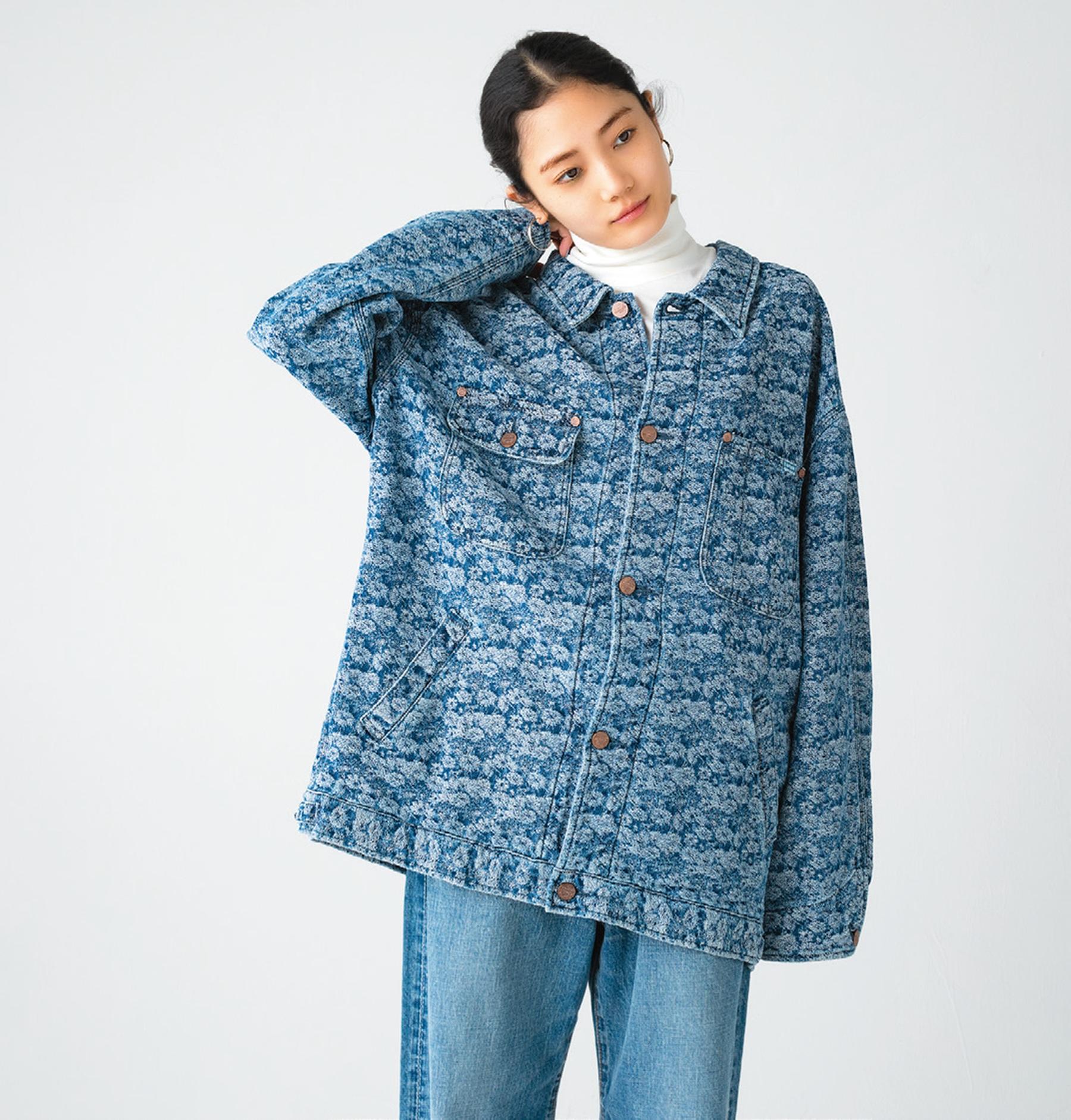 世界的なデニム生地メーカー「カイハラ」の素材を使用。定番のデニムジャケットも花柄なら新鮮。