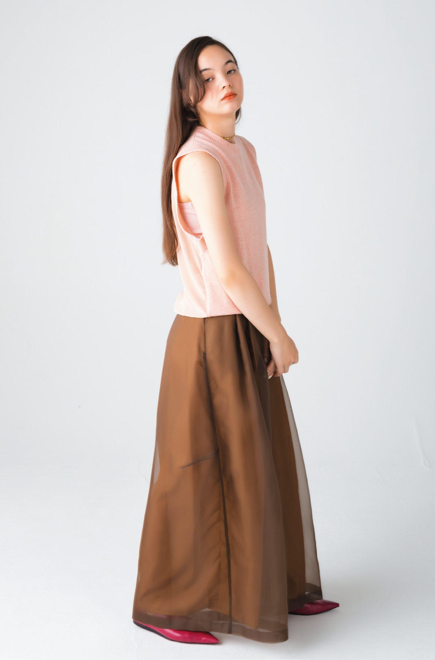 ベスト¥42,900 スカート¥49,500(共にアカネ ウツノミヤ TEL. 03-3410-3599) Tシャツ¥16,500(ハイク/ボウルズ) パンツ¥38,500(エストネーション TEL. 0120-503-971)