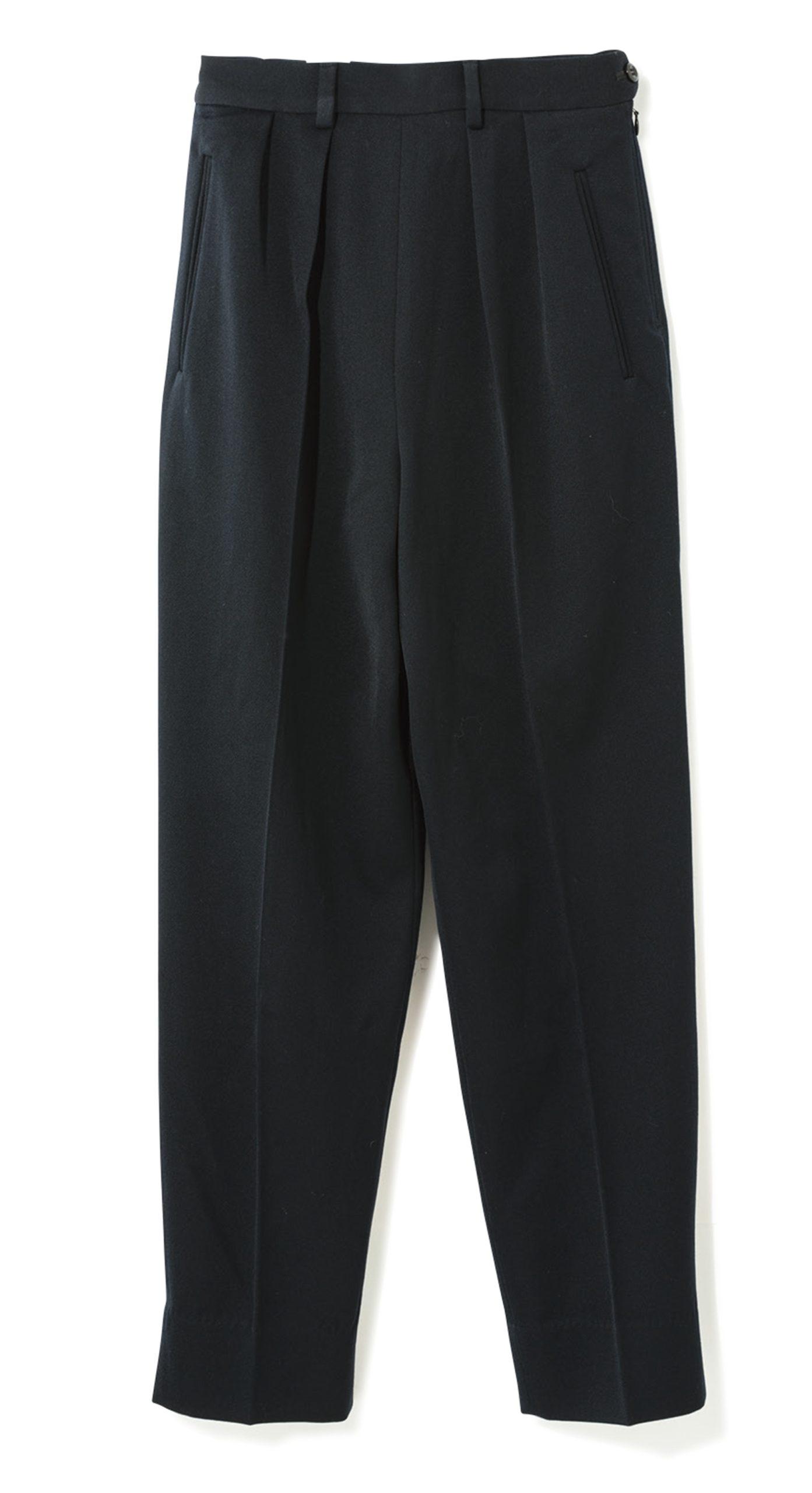 フランスのブランド『アナトミカ』のタックパンツは、ゆとりのある腰回りと膝下にかけてのシルエットが特徴的。上質なウール素材でこれからの季節に最適。