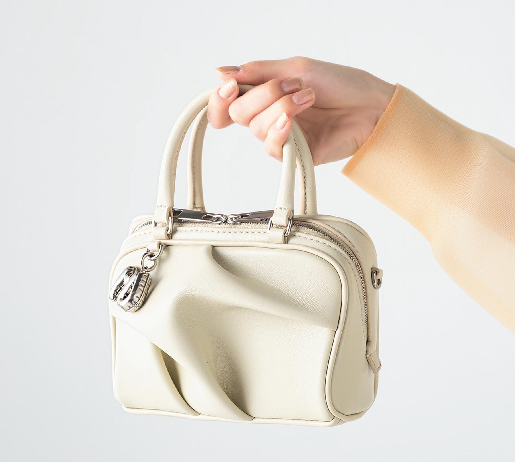 立体的なフォルムが目を惹く『マーク ジェイコブス』の新作バッグ。ぷっくりした「MJ」のメタルチャームもアクセントに。W25×H18.5×マチ12.5cm ¥115,500(マークジェイコブス カスタマーセンター TEL. 03-4335-1711)