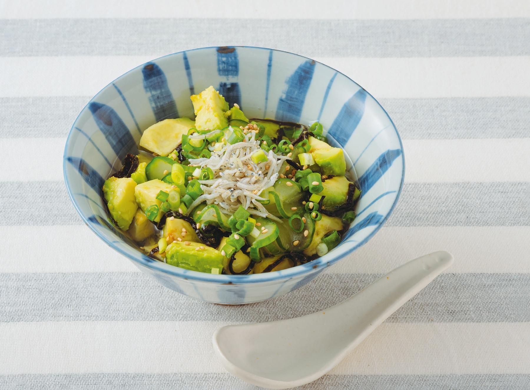 「アボカドは、1個に約5.6g食物繊維が含まれる優秀食材。夏なのでさっぱりと食べたいと思い、白だしのお茶漬けに。じゃこや塩昆布の味わいもよく、するすると食べられます」