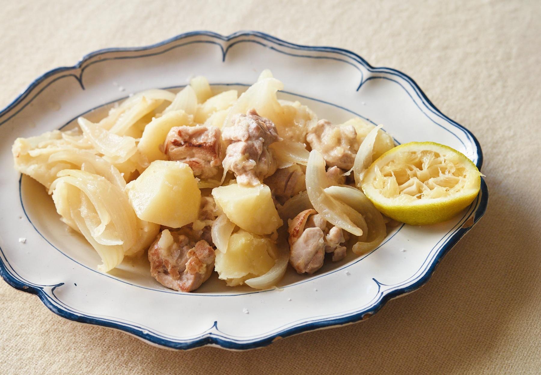 多くの料理に登場する鉄板の組み合わせである鶏肉・じゃがいも・玉ねぎ×レモンで新鮮に。煮る前に焼いてしっかり焦げ目をつけると香ばしさが引き出され、よりおいしさが際立つ。