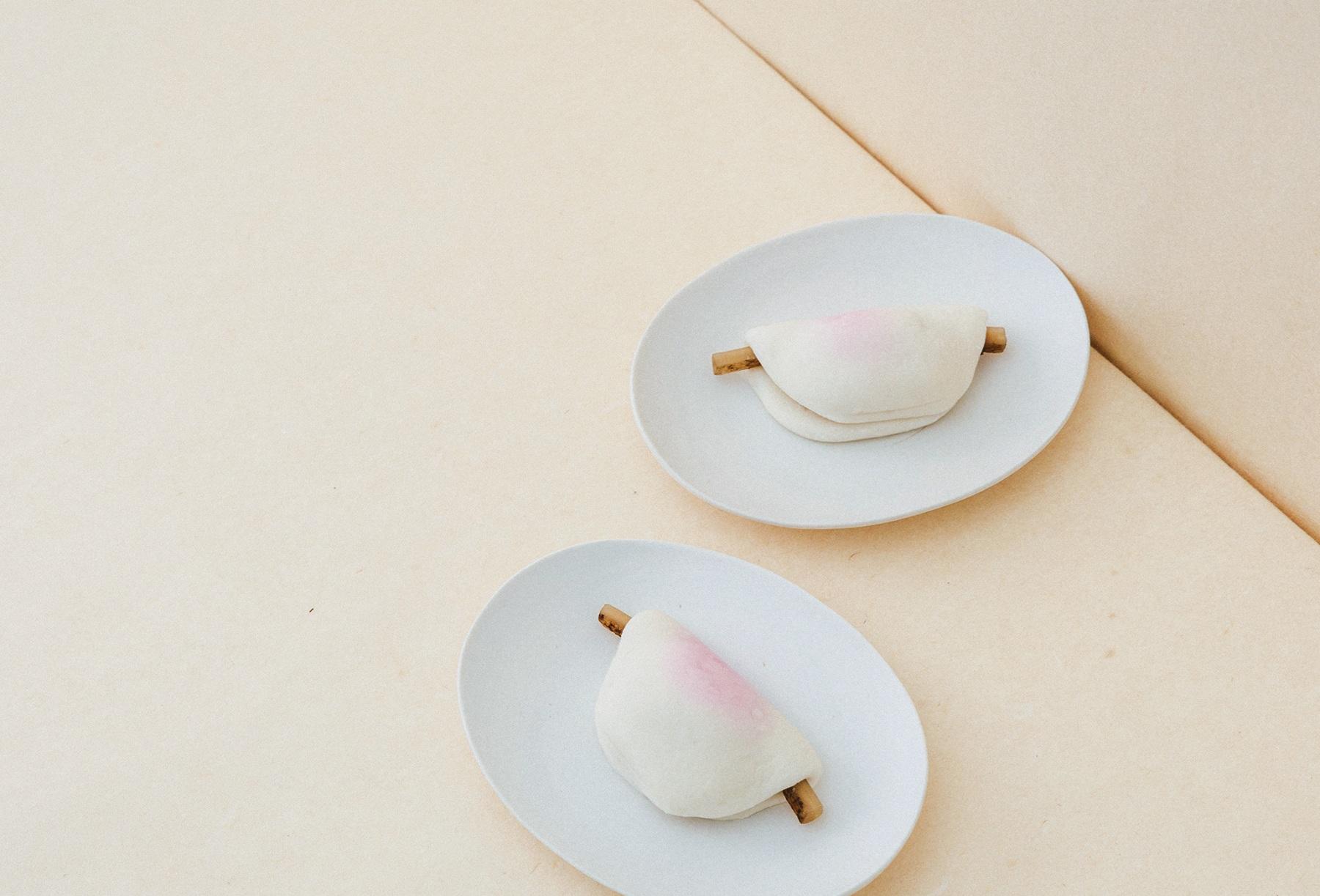 「形の可愛らしさはもちろん、もなかの皮が上下2枚に完全に分かれているのではなく、お腹側がくっついているのもポイント。腹割れしない=切腹しないという点でもめでたいんです。中には、つぶ餡ではなく、もなかでは珍しいこし餡がぎっしり。風味豊かなこし餡は、美しい藤紫色をしており、さらりとした上品な甘さにも惹かれます」(畑さん)
