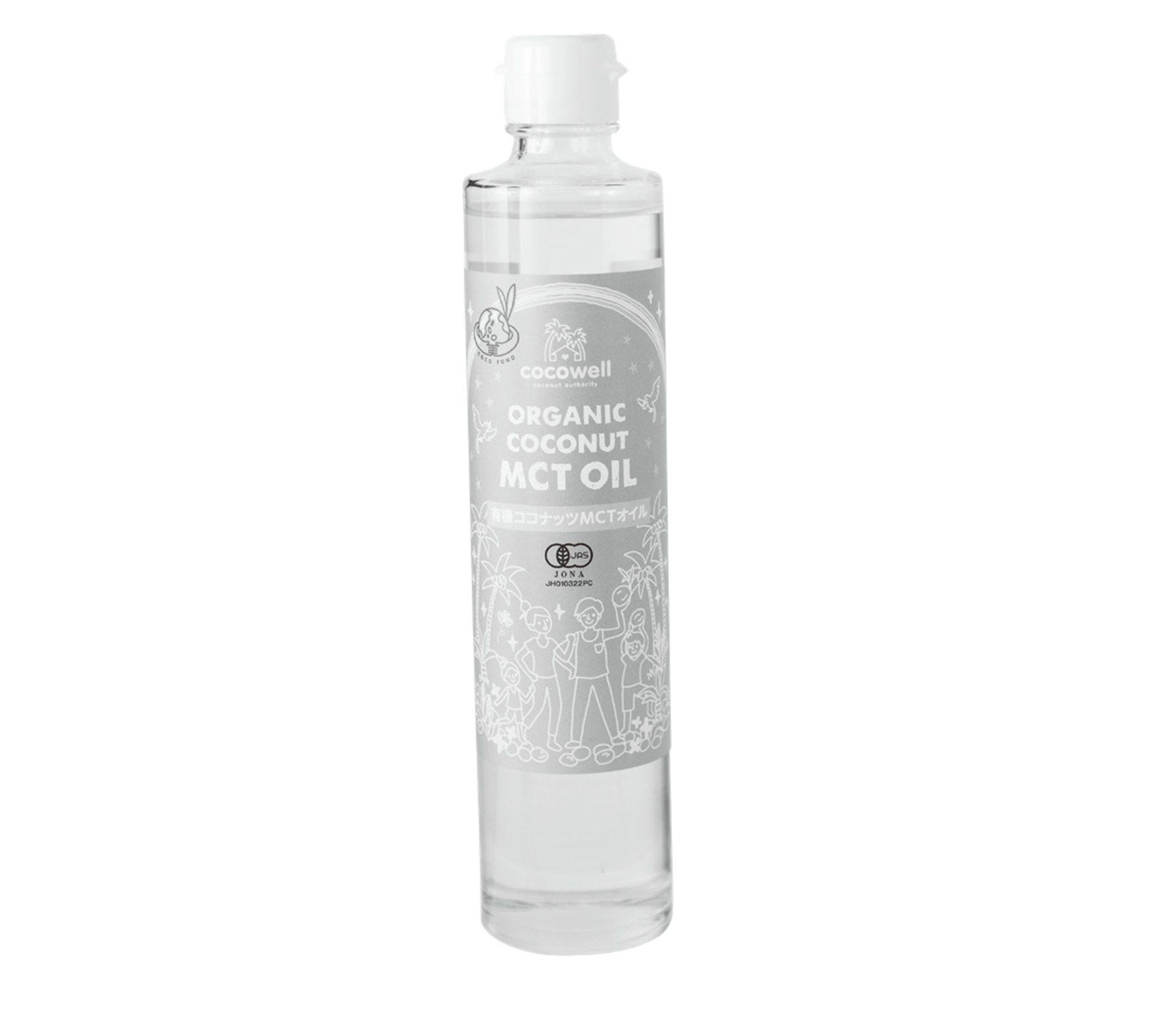 中鎖脂肪酸を約92%含有した「ココウェル 有機ココナッツMCTオイル 280g瓶」¥1,944。固まりやすい脂肪酸を自然製法で取り除いた液状タイプ。自然製法のため、一般的なものより香りが甘め。
