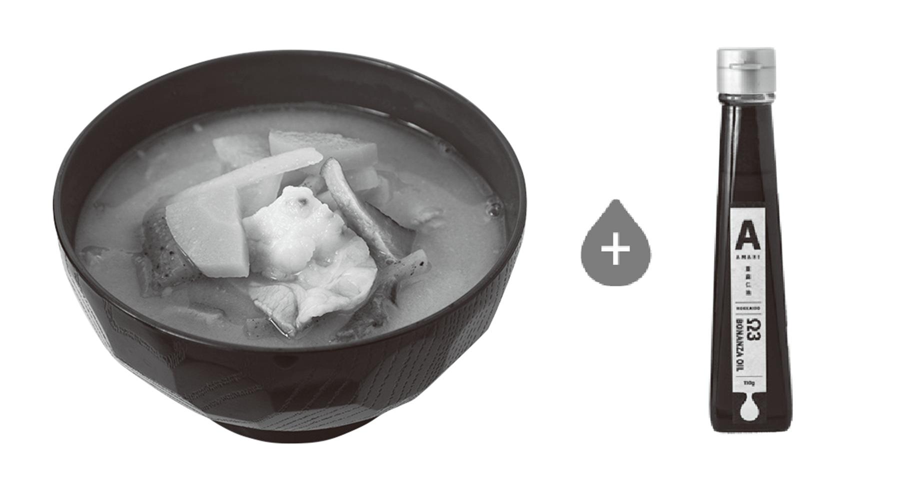 ② 豚汁+アマニ油