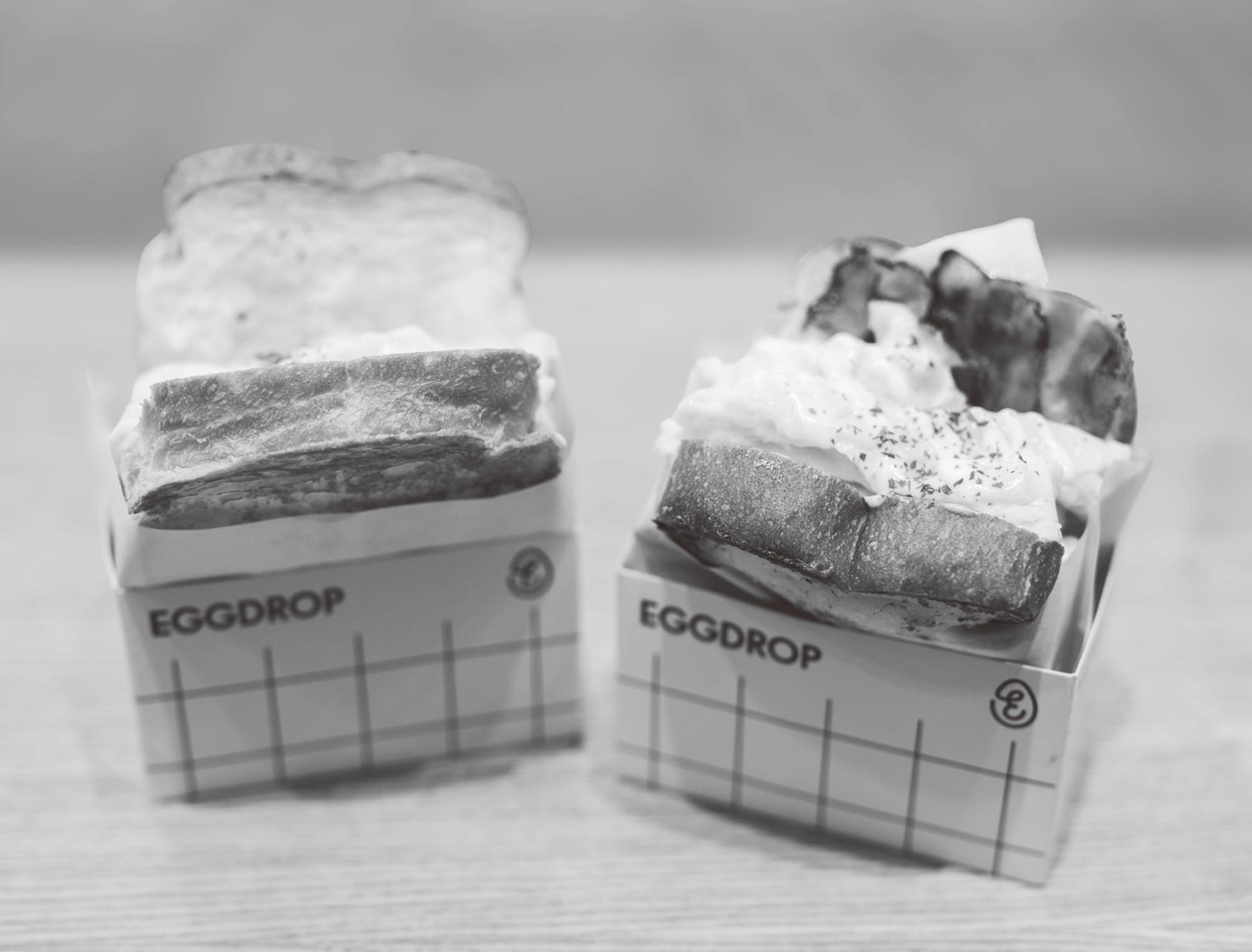 『EGGDROP』は、韓国式エッグサンドをいち早く提案した先駆け的存在。全メニューに完全栄養食品である卵を使用しており、スリーブに入ったエッグサンドの可愛らしいルックスも韓国っぽ! シグネチャーメニューは「Mr.Egg(ミスターエッグ)」。ふわふわのスクランブルエッグ、とろけるチーズを香ばしいブリオッシュでサンドしたもので、甘じょっぱい味わいがクセに。