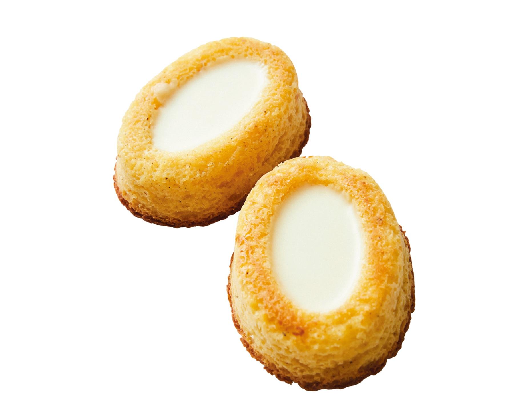 ガトーラスクでおなじみのスイーツブランドが手がける、北海道限定商品。北海道の雪を連想させるお菓子は、道産の生クリームを練り込んだホワイトチョコレート生地に、ホワイトチョコレートソースを流し込んだ一品。上品なバニラの香りとクリーミーな味わいがリッチに広がり、生地の中に忍ばせた砕いたマカダミアナッツの食感も良いアクセントに。1個 ¥324。