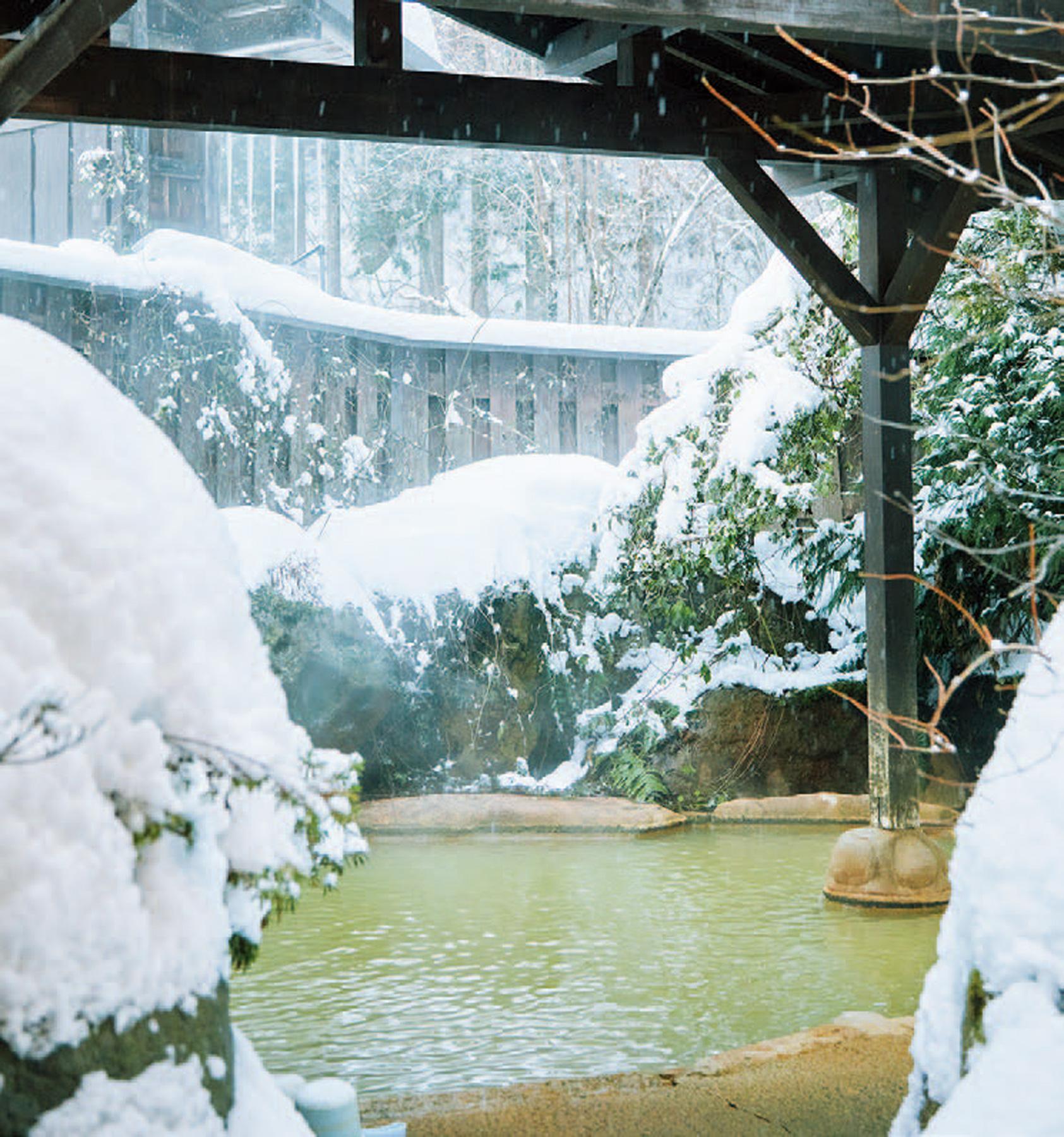 バスに乗ってたどり着いたそこは、深々と雪が降り積もる、白銀の景色。粉雪にまみれて遊んでも楽しい、お湯に浸かりながら眺めても美しい。雪深い“奥”でしか味わえない特別な時間を、思い切り満喫して。