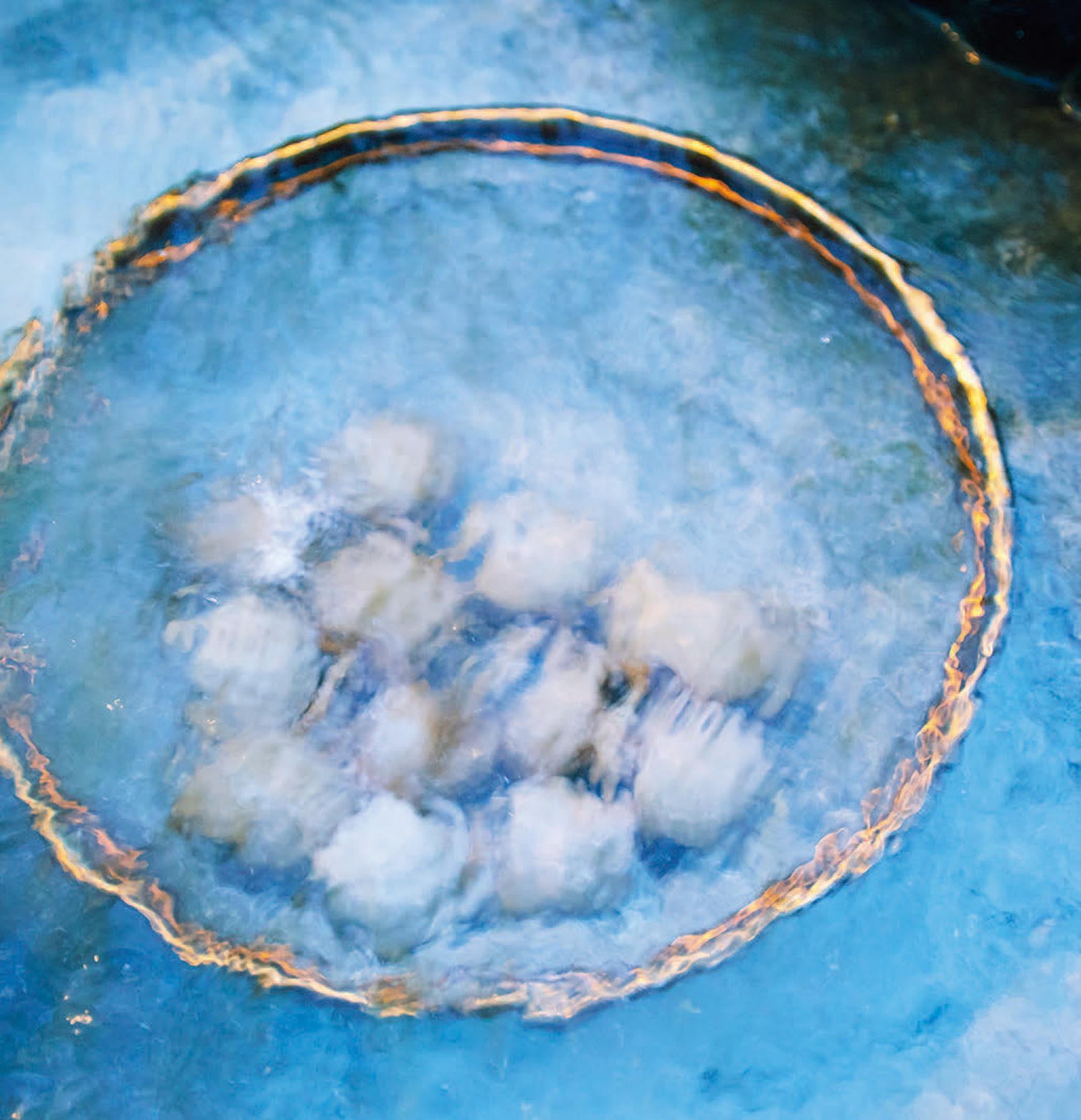 お店の入り口にある小さな温泉・鶴の湯温泉で作られているのは、黄身が固くて白身が半熟の〈はんたいたまご〉¥100。ほんのり塩味なのは、温泉に塩味が効いているからだそう。