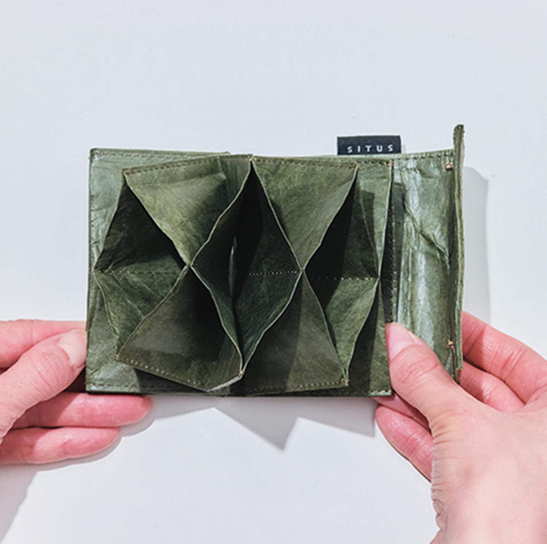 薄さと軽さ、耐久・耐水性などを兼ね備えたタイベック(R)(高密度ポリエチレン不織布)を使用。5つのカードポケット&紙幣入れ&コインポケット付きで見た目以上に収納できる。W9.5×H6.5×D2cm¥6,930(