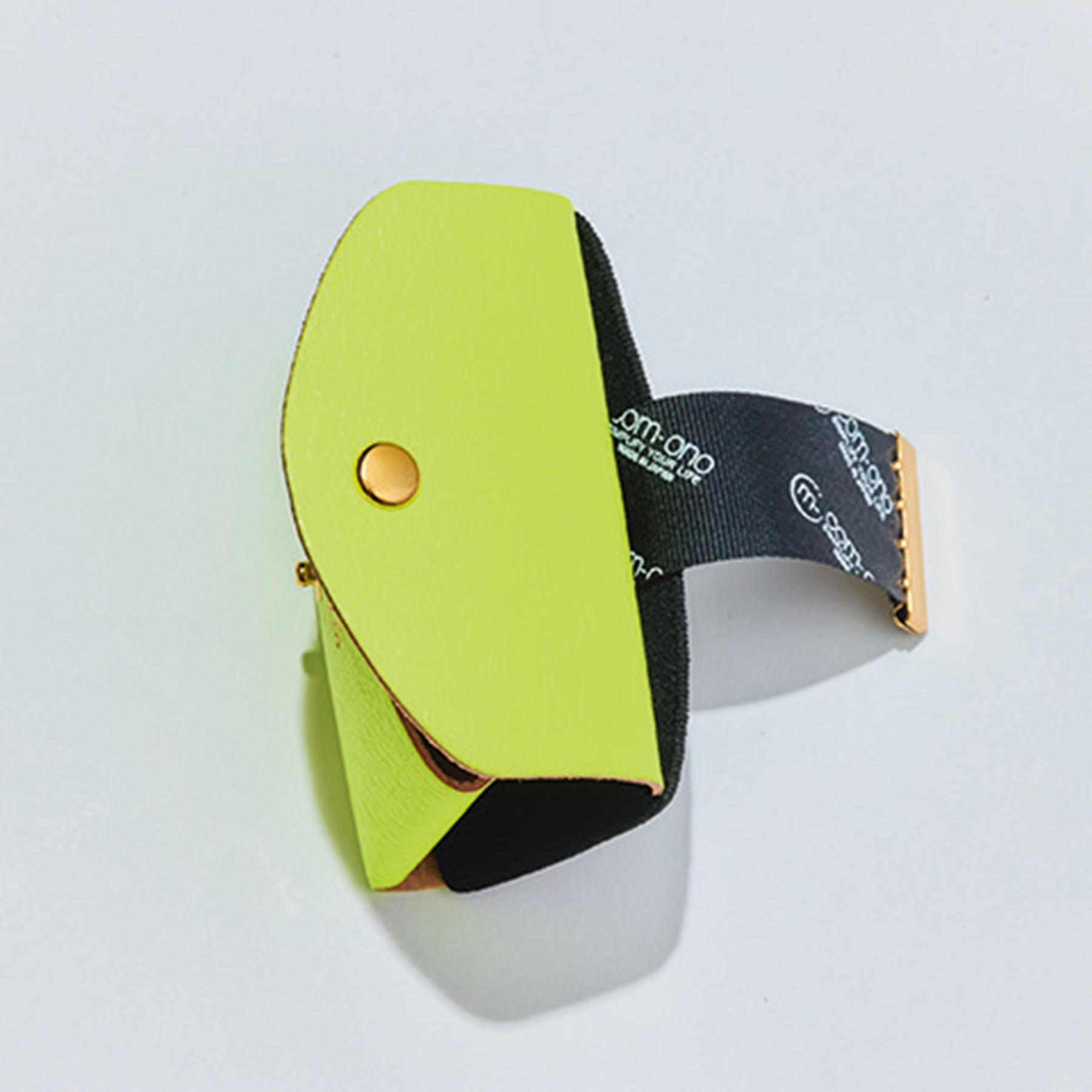 背面のタブを引き出すと、スムーズにカードが取り出せるのが特徴。鮮やかなネオンカラーのミニウォレットは、カバンの中で見失う心配もナシ。W9×H6×D2.2cm¥7,700(コム・ォノ×ビームス プラネッツ/ビームス プラネッツ リミテッドストア 下北沢 TEL:03・3460・8515)