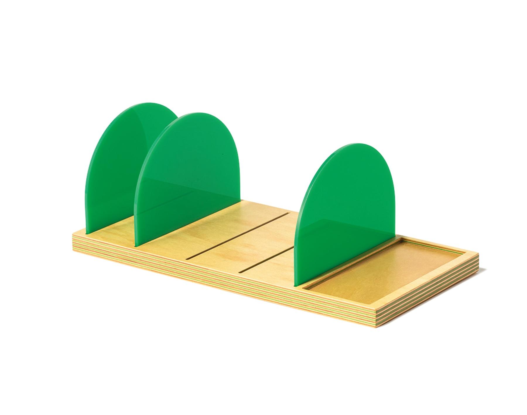 ビビッドなアクリルプレートがひと際目を引くブックスタンド。メガネやペンなど、小物を置けるスペースが備えられているのも便利。