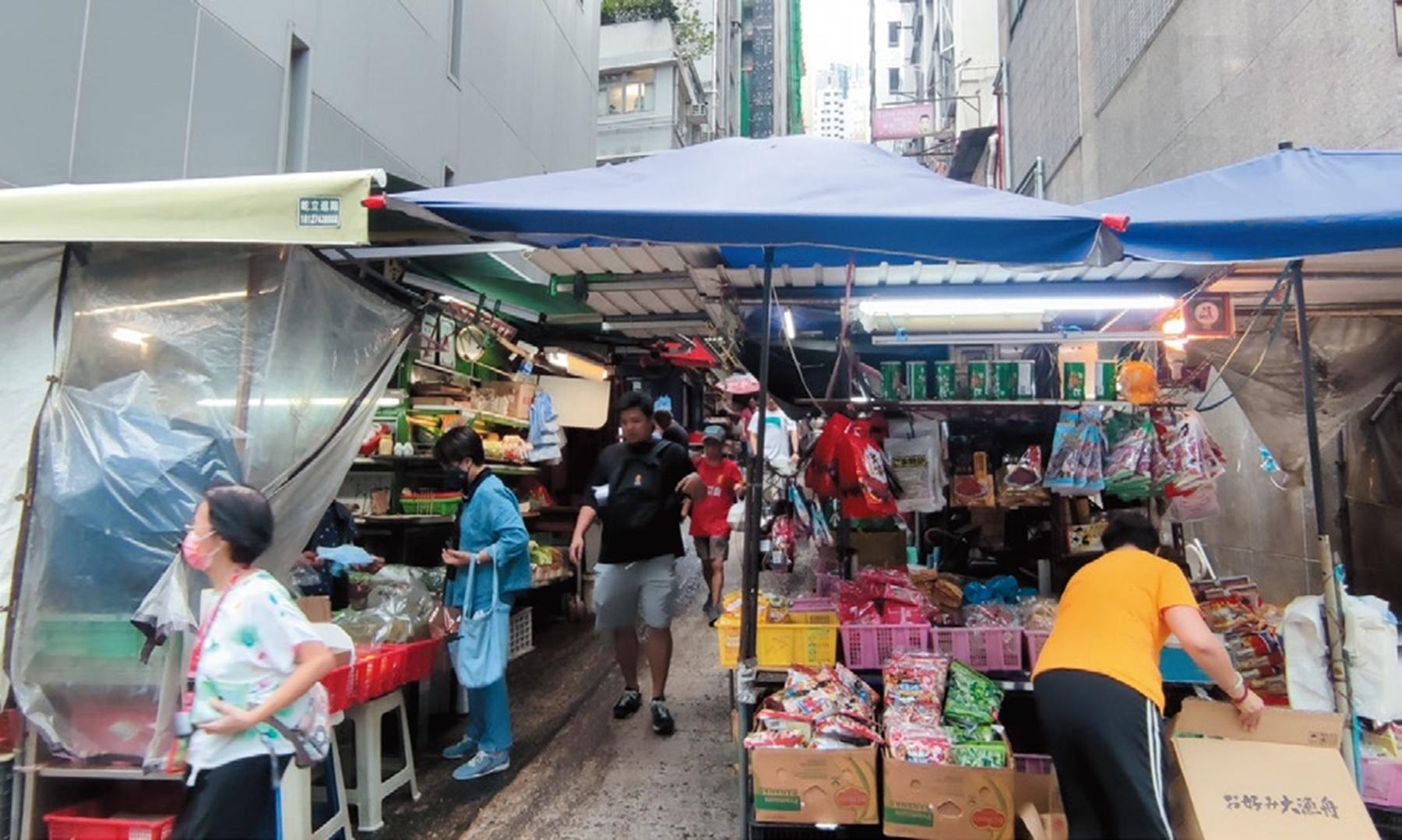 「屋台で食事をしていた警官663号(トニー・レオン)が、フェイ(フェイ・ウォン)の荷物を持ってあげるシーンです。同じ屋台はもうありませんが、ほかの屋台や露店のパラソルなど当時の面影は感じられます」