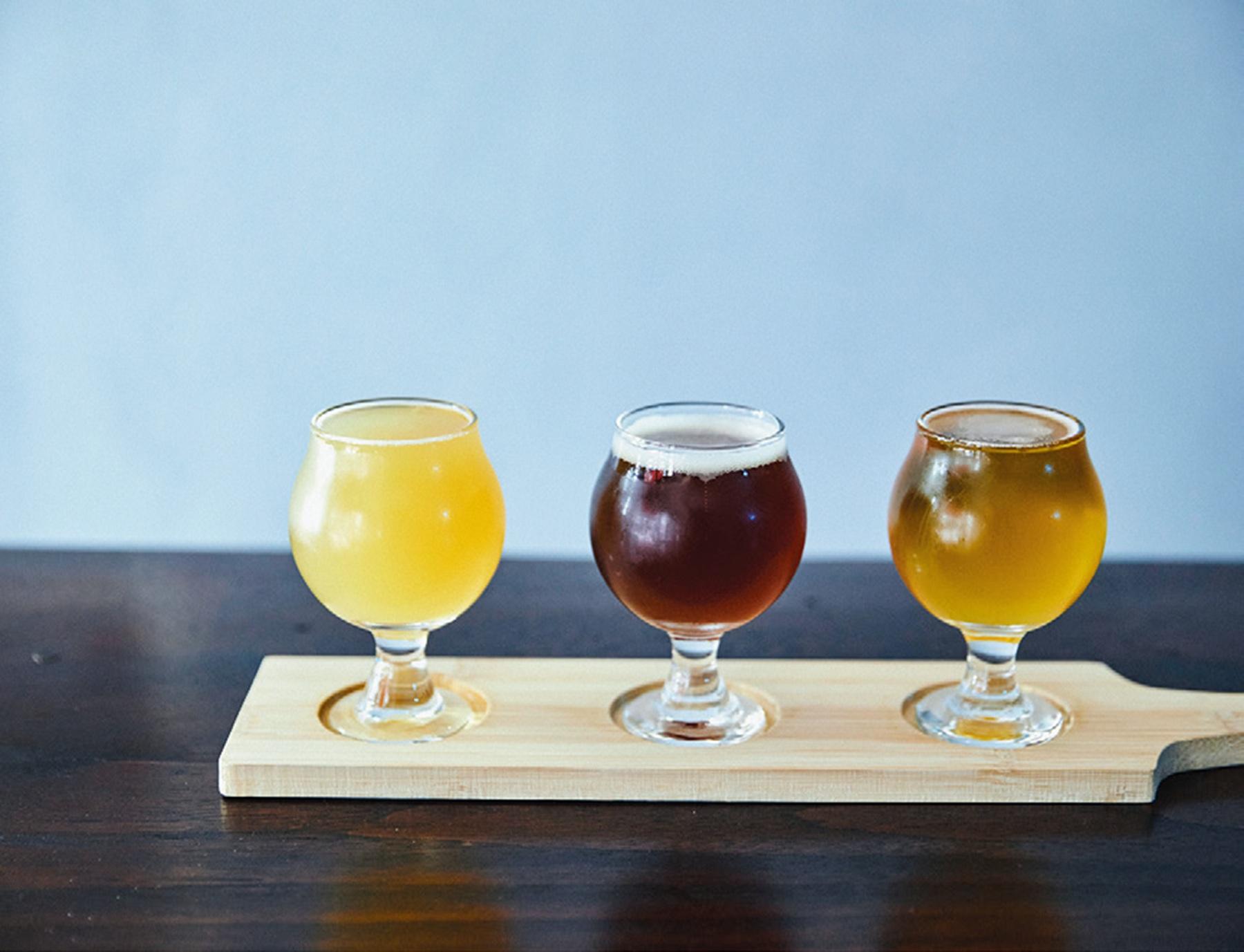 常時6種類あるビールの中から3種類を飲み比べできるセットが人気。¥1,300。