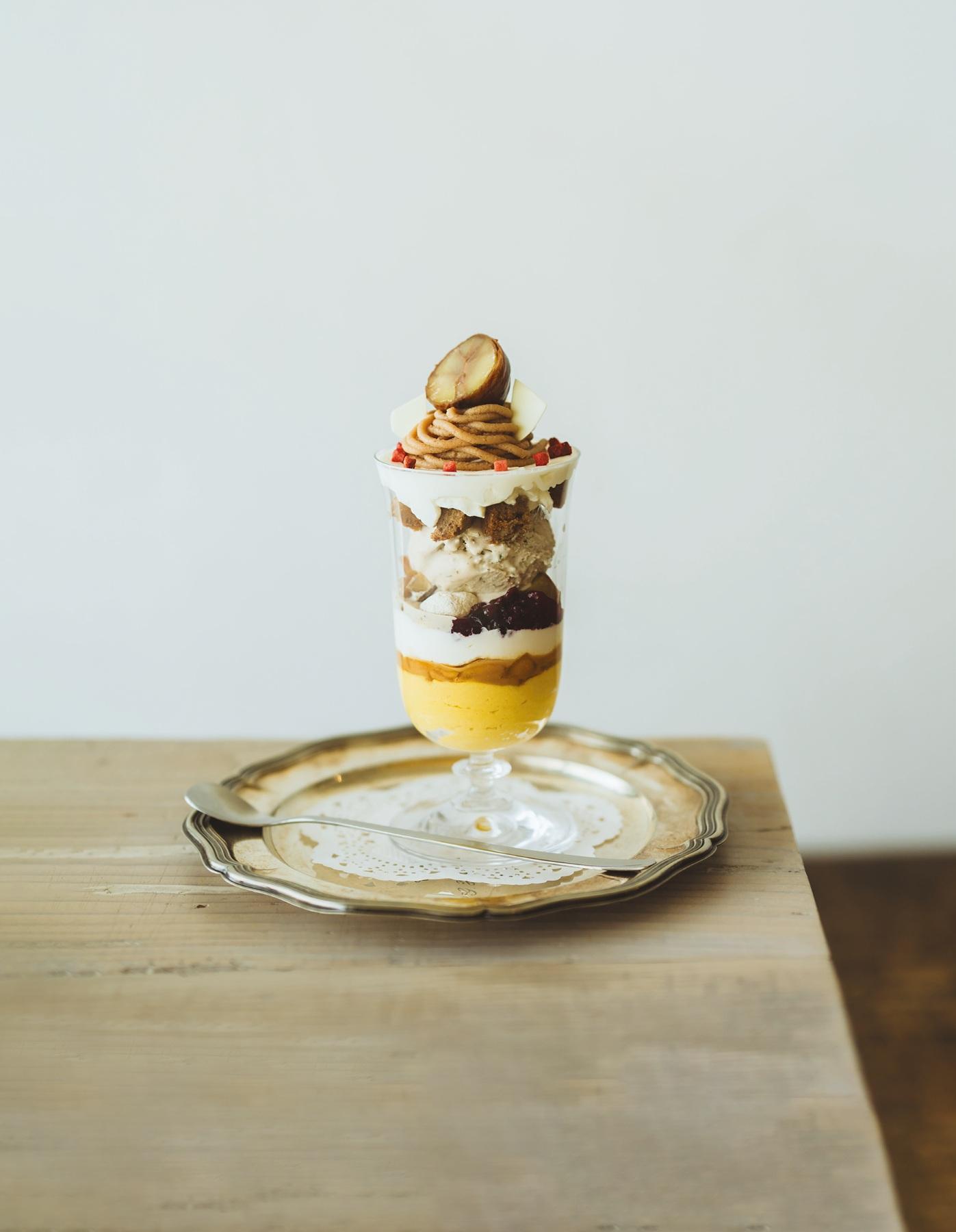 【AlgAe(アルジー)】小布施産の新栗と、自家栽培の会津赤かぼちゃが主役のパフェ。