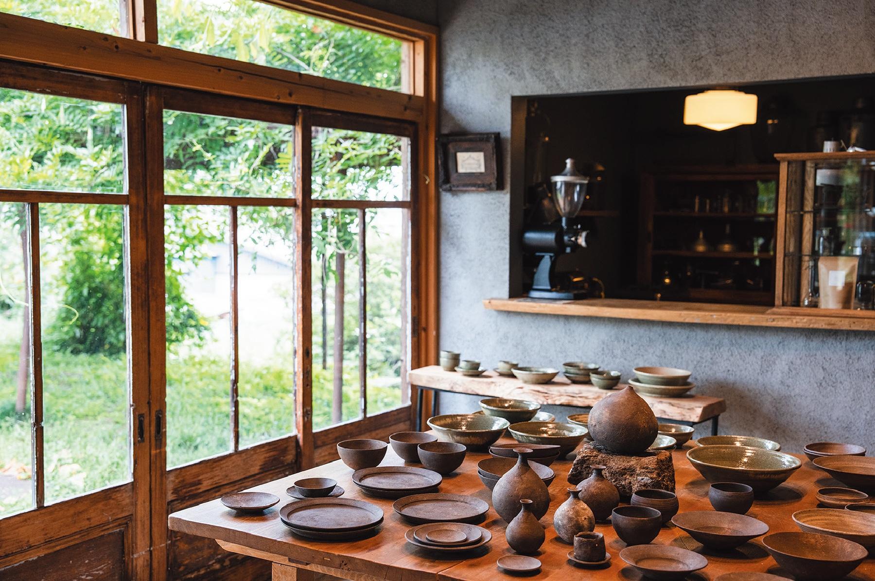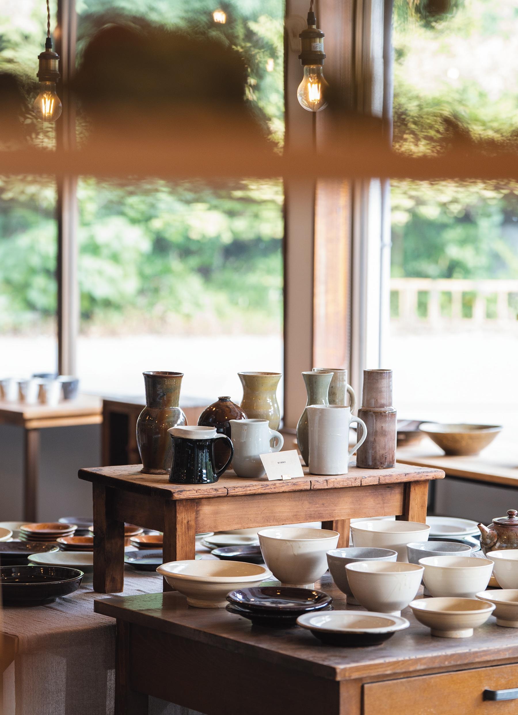 1969年創業の窯元。3代目・小峰一浩さんが陶芸体験教室を営む傍ら、妻のあまねさんがセレクトショップ『nagi』を2021年にオープン。錚々たる人気作家の益子焼や各地のクラフト雑貨が並ぶ。