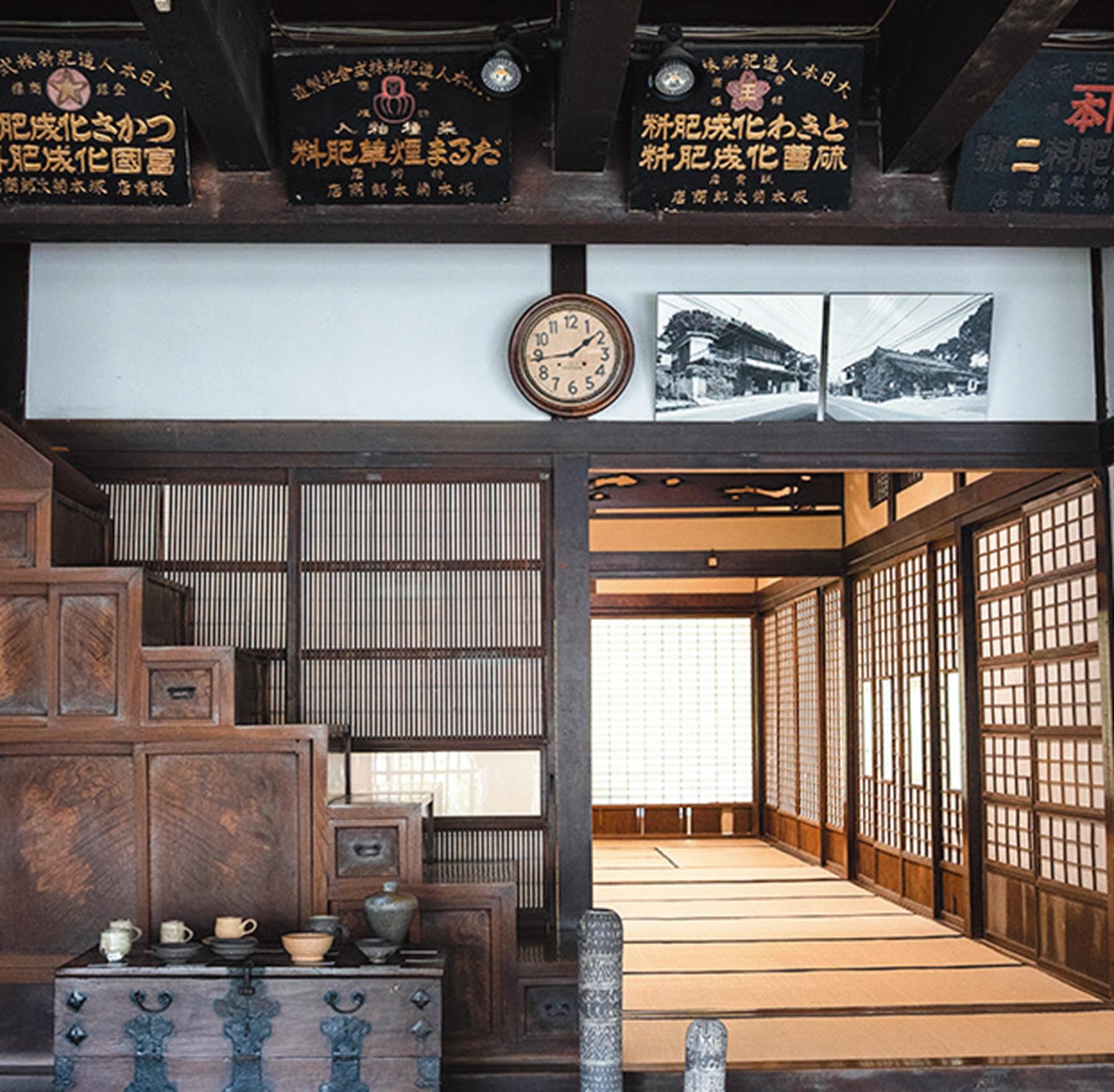 肥料商時代の名残がうかがえる和室ギャラリー。