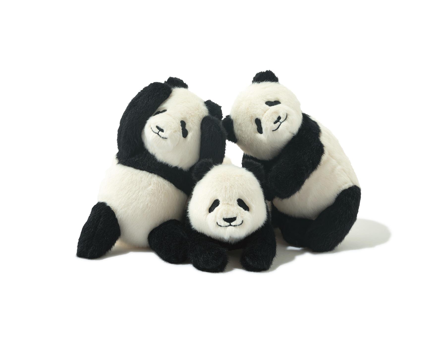 上野で育った3頭それぞれの顔立ちや性格が見事に表現されたポーチ。もっちりふわふわの毛並みもたまりません。フェリシモでのみ販売中。パンダ3きょうだい シャンシャン・シャオシャオ・レイレイののんびりポーチの会¥3,300(YOU+MORE!)