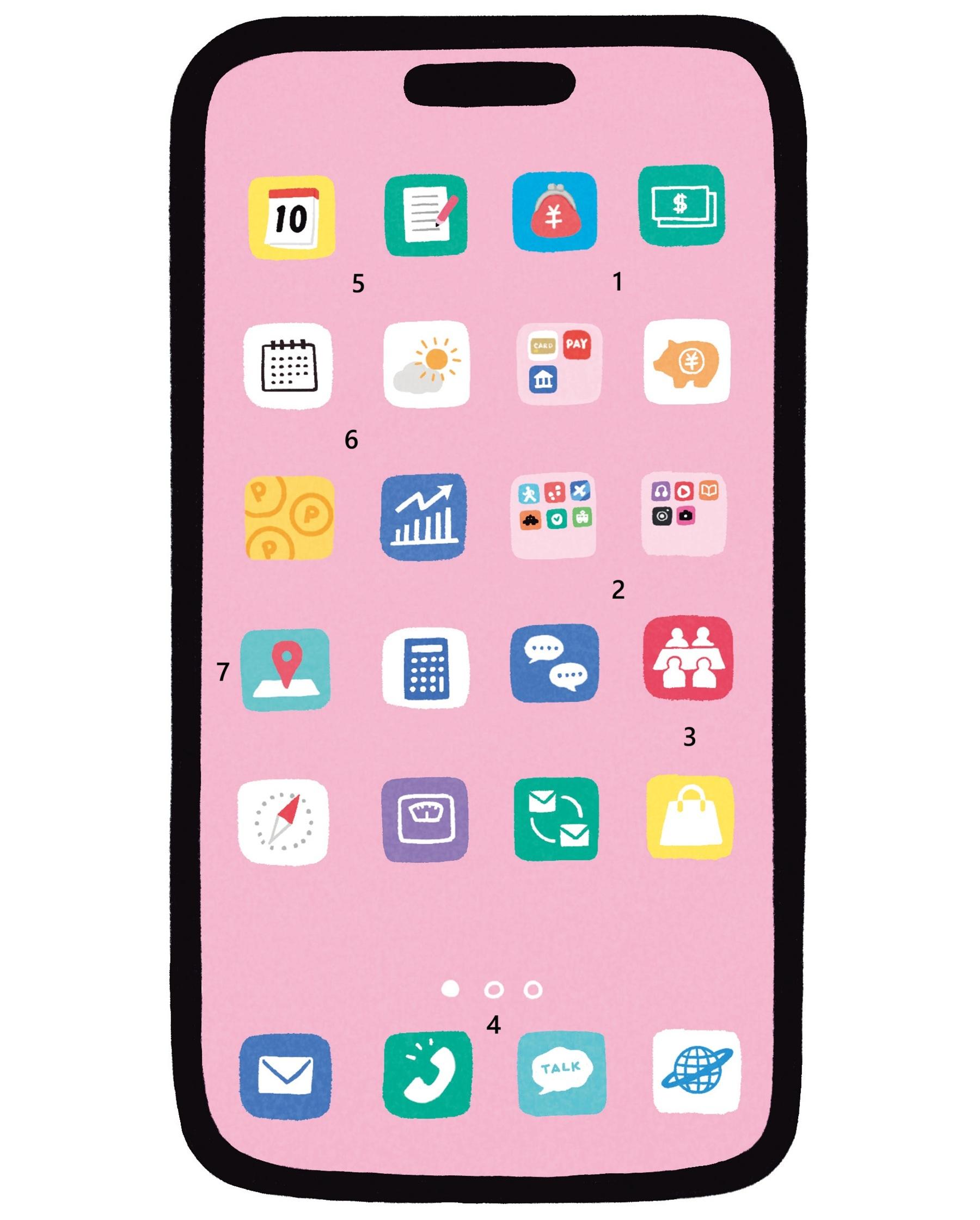 そこでスマホに風水を取り入れて運気を上げる、風水師の李家幽竹さんおすすめの方法がアプリアイコンの配置換え。スマホも家や部屋と同じように方位を意識して、画面の上を北、下が南とあてはめ、その方位の気を持つアプリを配置することが大切。たとえばお金に関する蓄財系アプリを土の気を持つ北東に配置すると、動の気を抑えて無駄遣いを防ぎ、金運アップに効果的だそう。