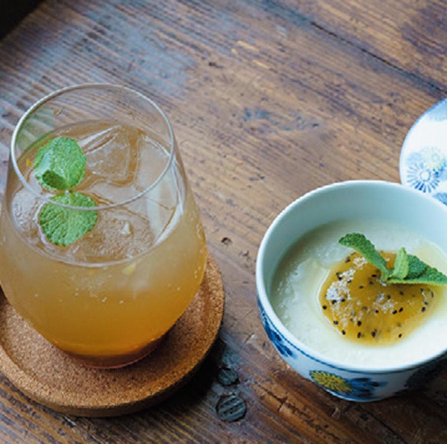 ランチの甘酒プリンと甘夏ジュース。