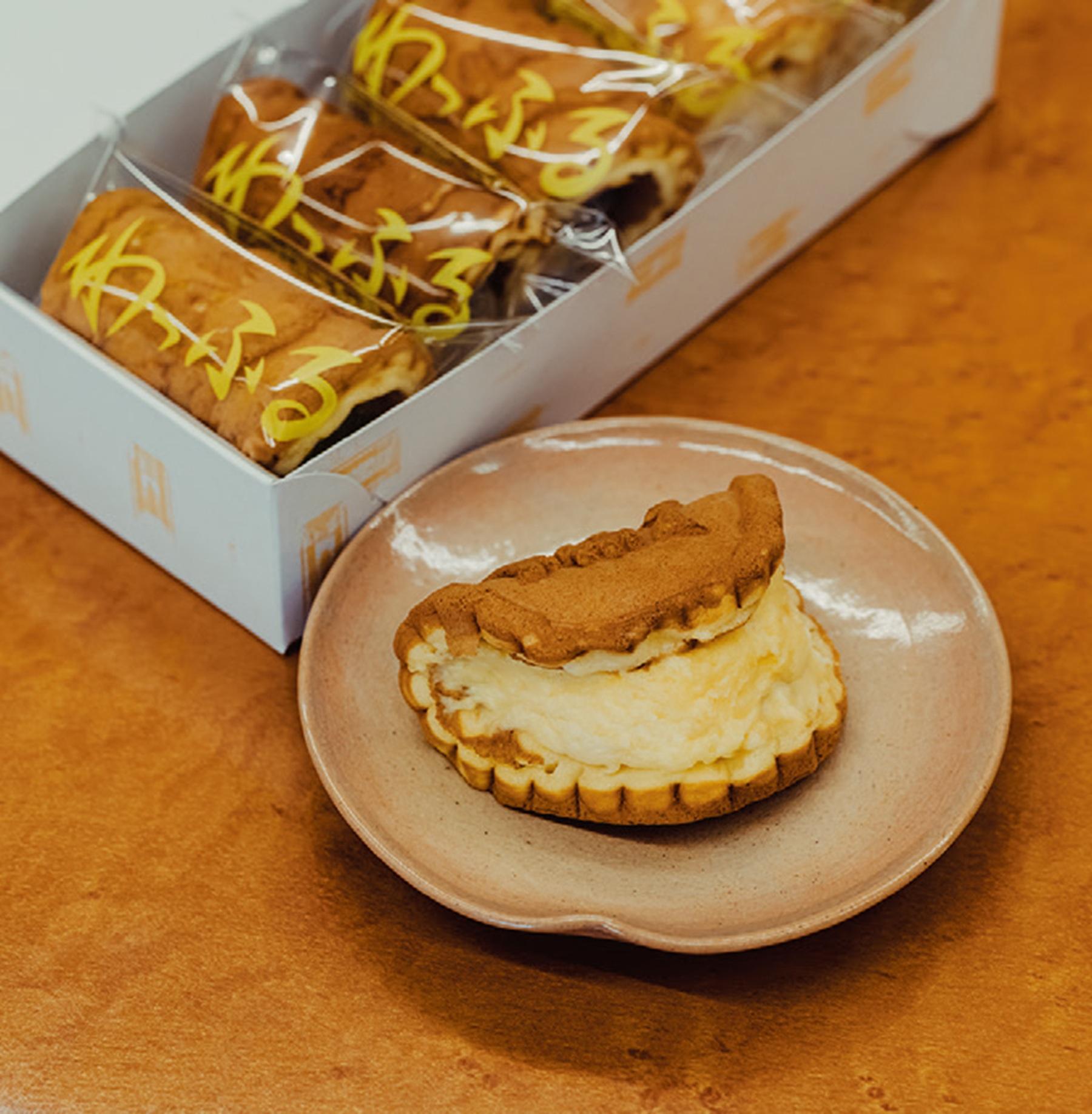 創業は明治後期という歴史のある和菓子屋さん。手作りの温泉まんじゅうや生菓子などが並ぶ中、休日には行列ができるほど人気なのが、手焼きの生地にクリームをたっぷり挟んだ“わっふる”。甘さを控えた味わいとふわふわな食感は、懐かしさと優しさが溢れていて、心が温かくなる味わい。黒糖を使った生地で生クリームとあんこを巻いた“黒糖ろーる”も絶品!