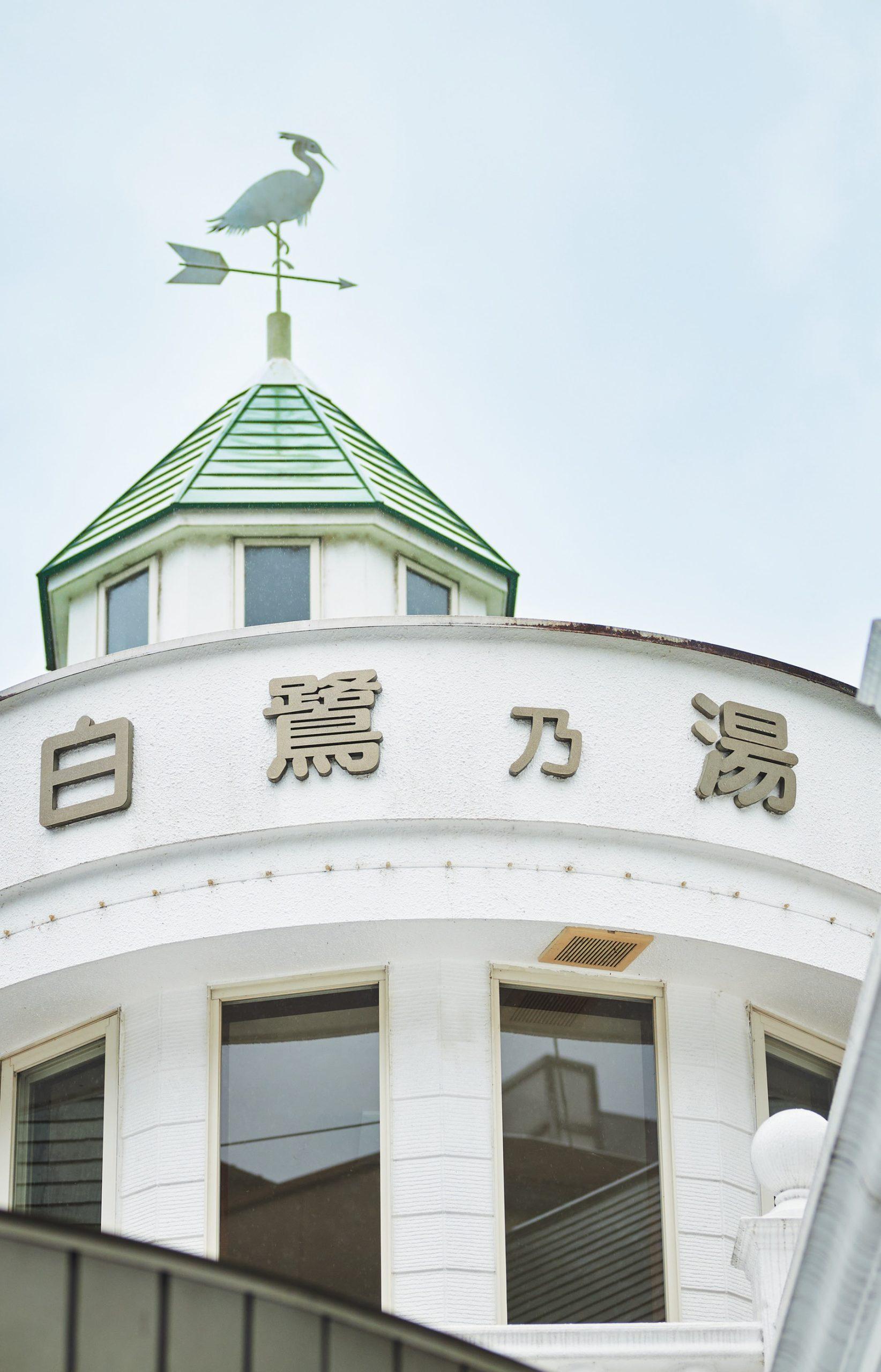 街中でひときわ目を引く「白鷺乃湯」の洋風なドーム。上には街のシンボル・白鷺をかたどった風向計が。