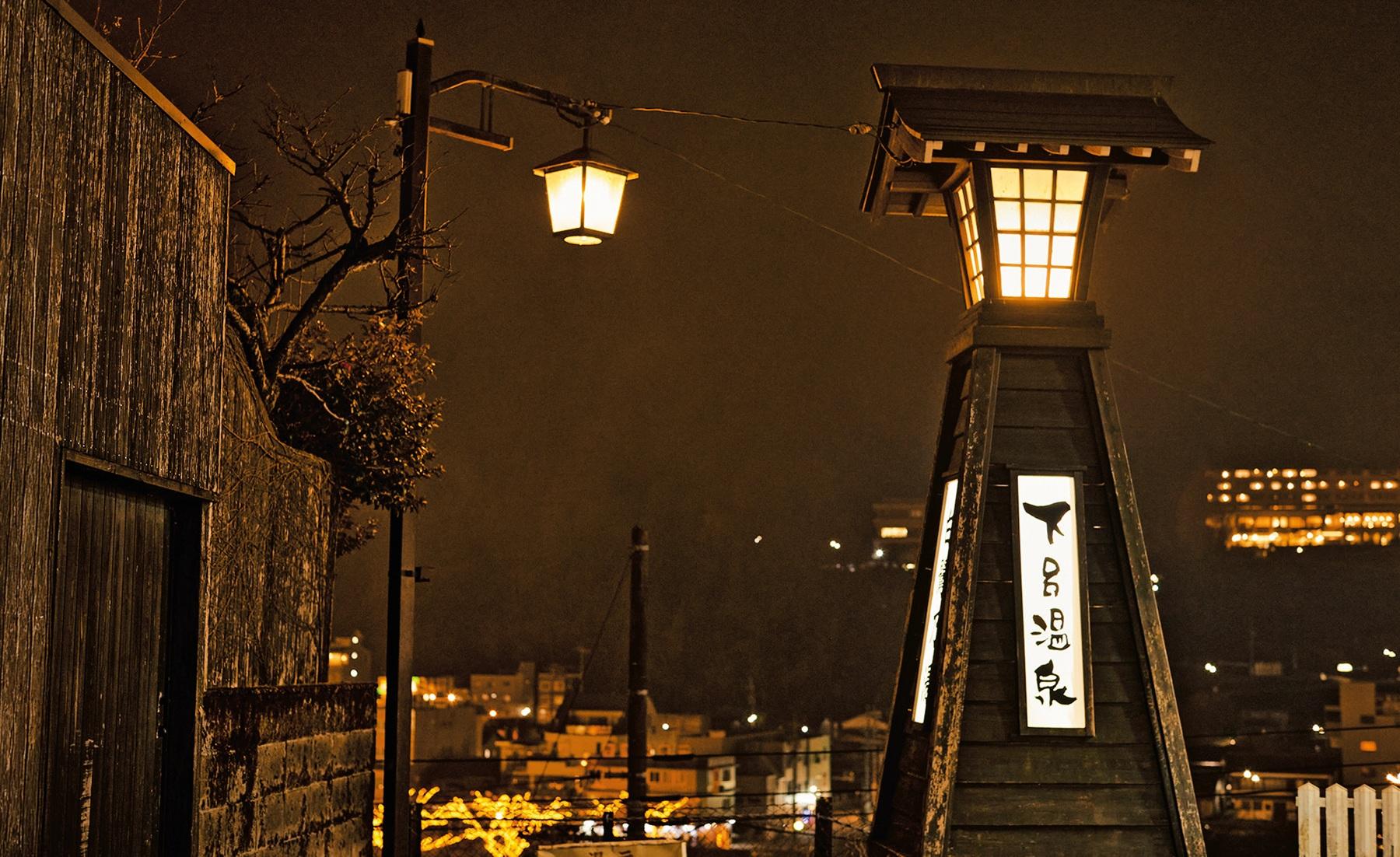 「湯之島館」を出て、「白鷺乃湯」へと5分ほど下った先には、街を見下ろす密かな夜景スポットが。