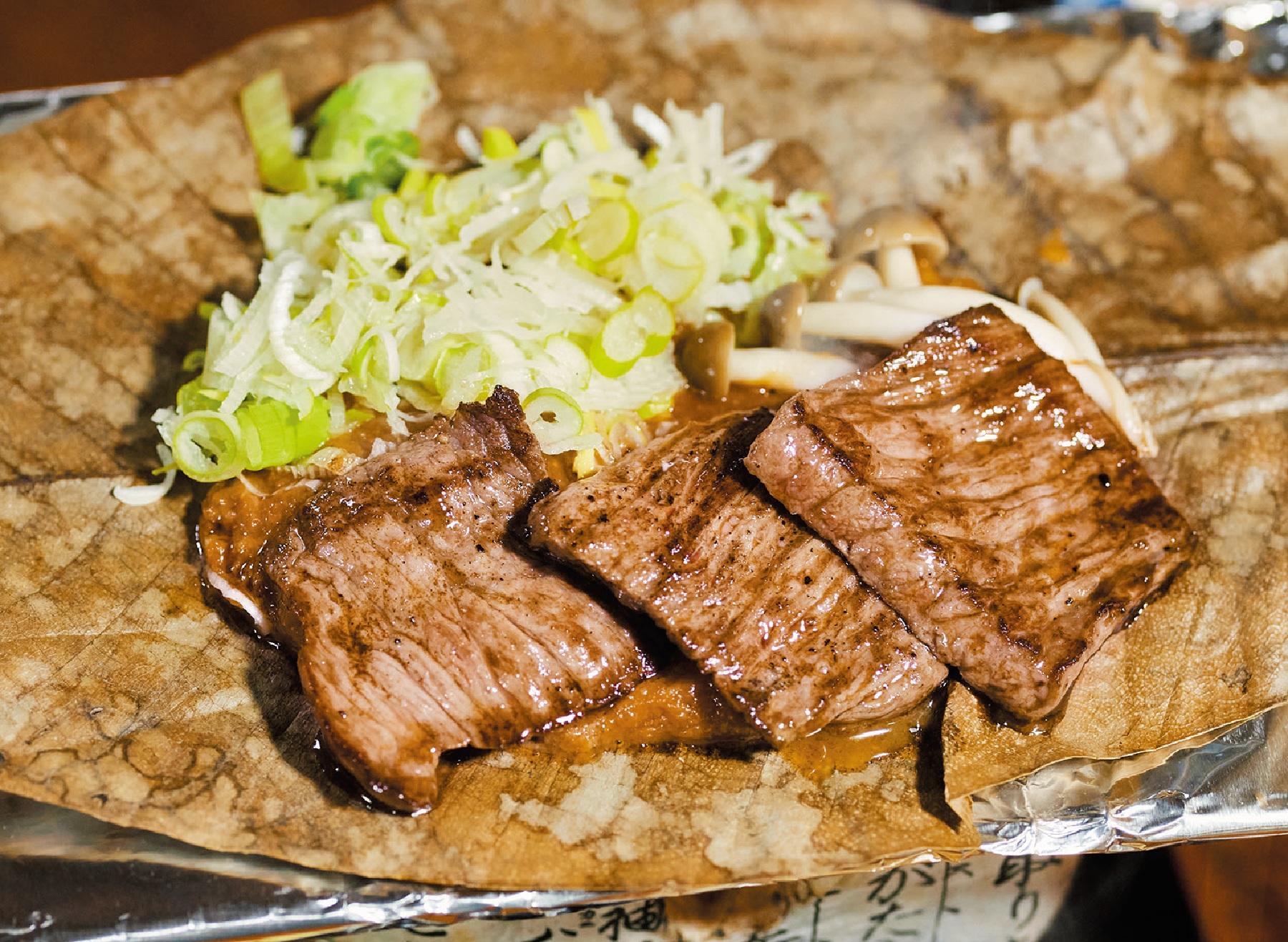 昭和43年のオープン当初から猪鍋と朴葉味噌を提供し、人気の老舗。「天然いのしし鍋」に使用するのは、脂がのり柔らかい40~50kgのメスで、年度内の狩猟期間に獲ったものだけ。ロースとバラ肉を、自家製の味噌を使ったスープで火を通していただく。臭みは全くなく、脂身の甘さとお肉の旨みが最高。「飛騨牛朴葉みそ」は、麹味噌や田舎味噌などを合わせた自家製味噌がおいしさの決め手。