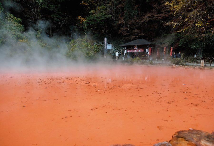 1300年以上前から存在する国指定名勝。一度見たら忘れない、まさに“地獄”な赤色は、酸化鉄・酸化マグネシウム等の成分でできた赤い泥からなる。園内には同じくミネラルたっぷりな足湯が。血の池にちなんだメニューがいただける、隣接の食事処『極楽亭』もおすすめ。住所:別府市野田778